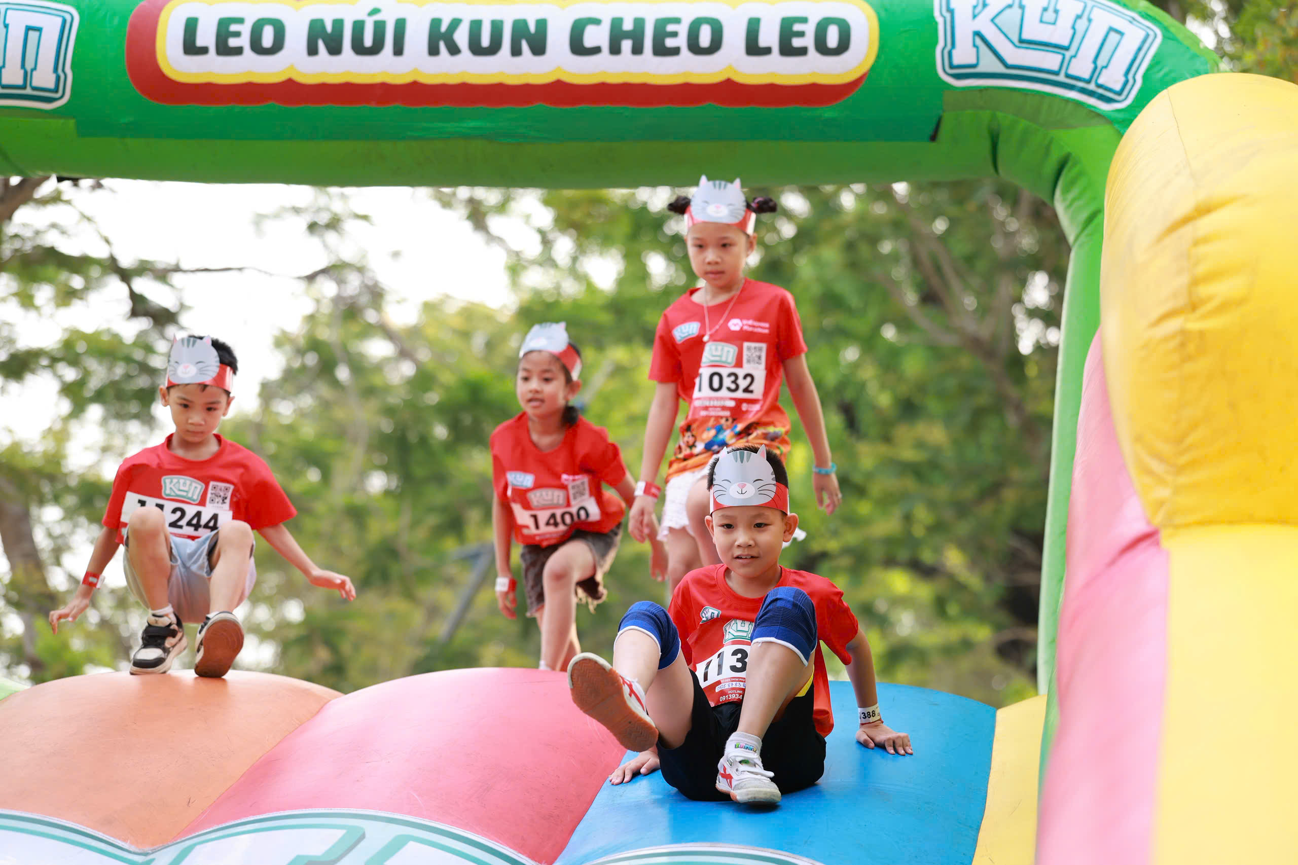 On the morning of 18/4, the Kun Marathon Hue 2026 unfolded at Ngo Mon Square, drawing 2,500 children aged 6-10 to tackle a challenging 1 km obstacle course. Before the race commenced, the young participants engaged in warm-up exercises and interacted with celebrities Truong Giang, YouTuber Meo Simmy, and Mike Den, setting an energetic tone for the event.