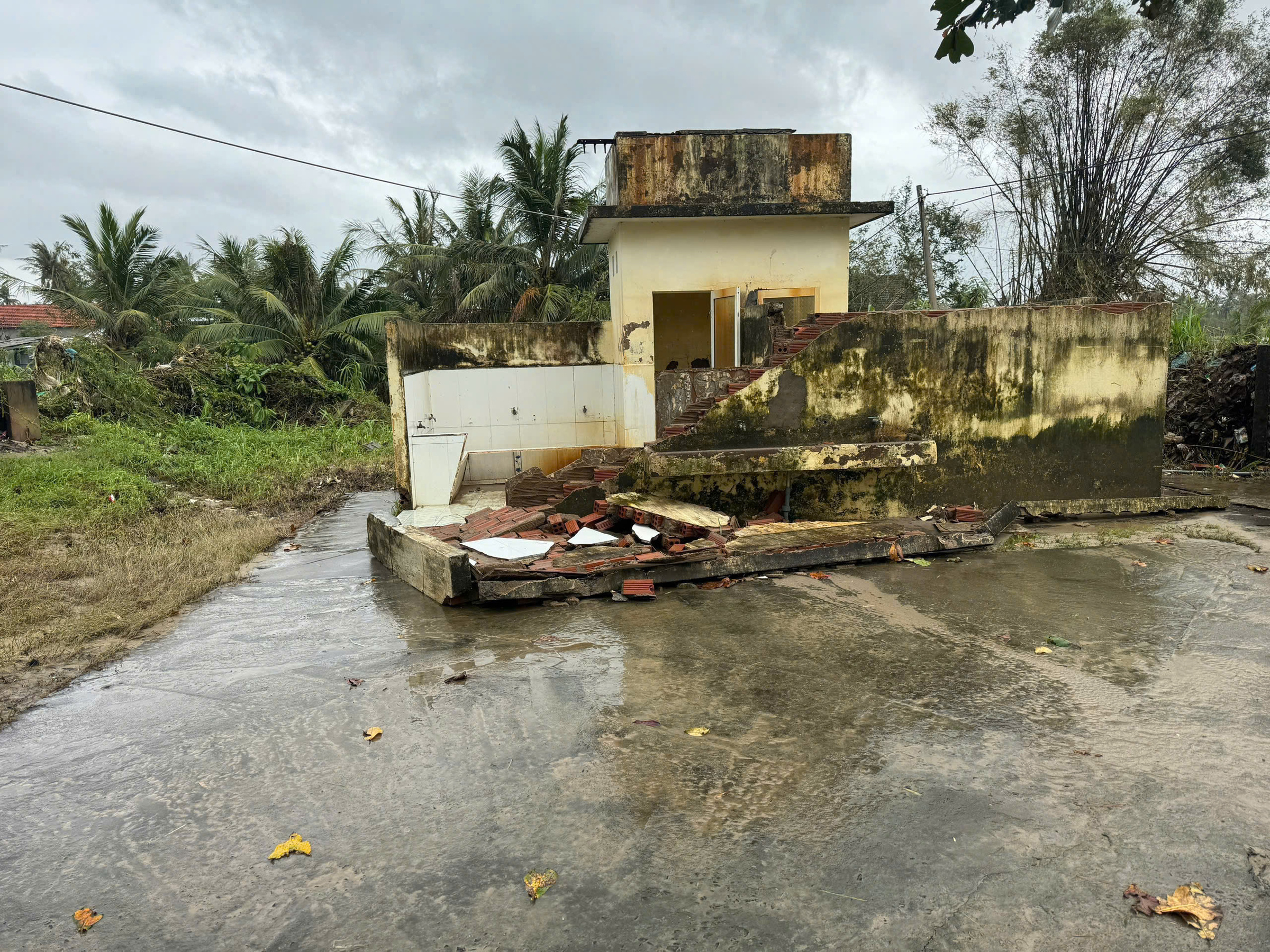 Khu nha ve sinh tai diem truong Ha Yen, thuoc Truong TH-THCS Le Duan, xa Tuy An Dong, bi bao lu danh sap, thang 11/2025. Anh: Nha truong cung cap
