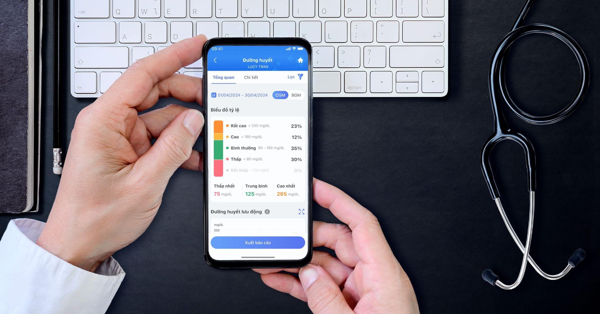 Since using the 3P continuous glucose monitor, both Linh and Trang have felt more at ease. The device automatically updates glucose levels every 3 minutes, displays them clearly in Vietnamese, and provides alerts when blood sugar exceeds the set threshold.