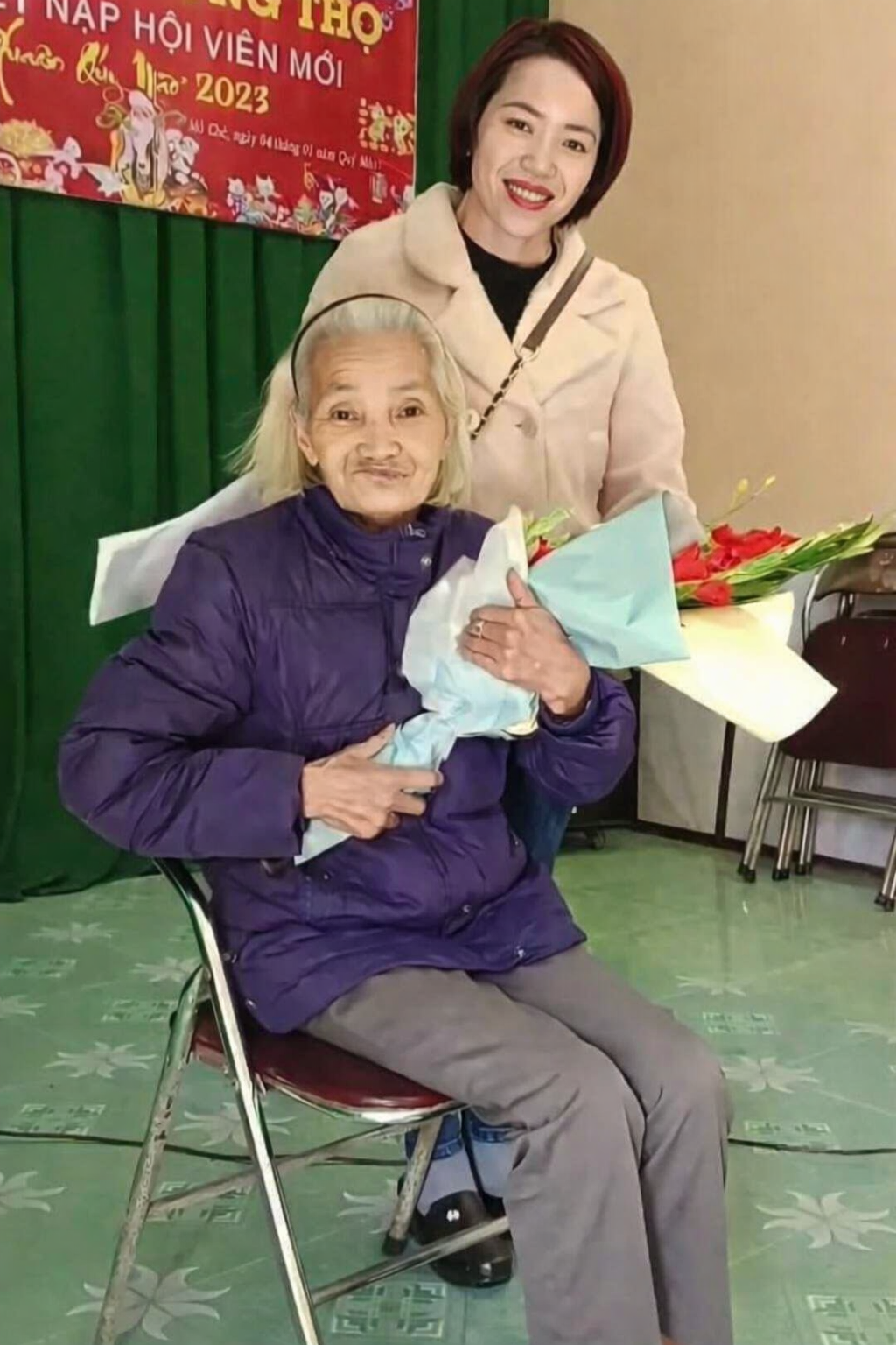 Thai with her mother during a Lunar New Year longevity celebration in 2023. Family photo |