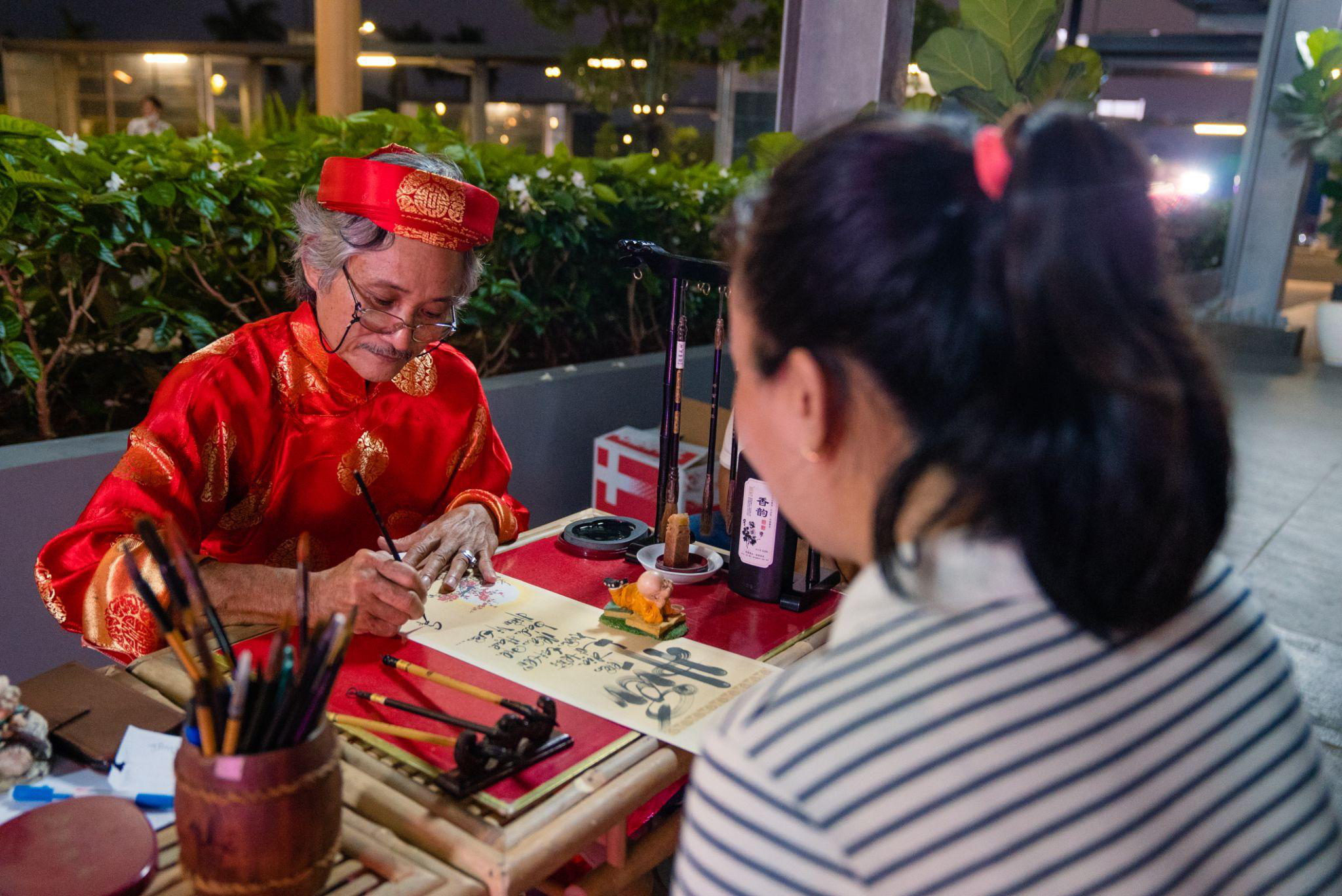 Visitors can experience xin chu (asking for calligraphy) at the beginning of the year. Photo: Nam Long