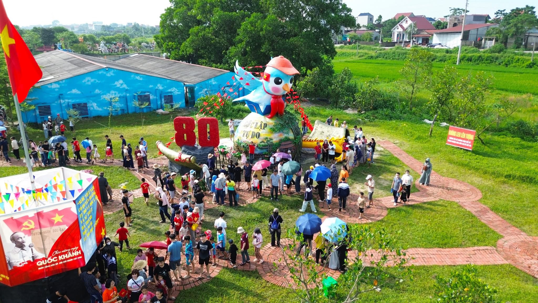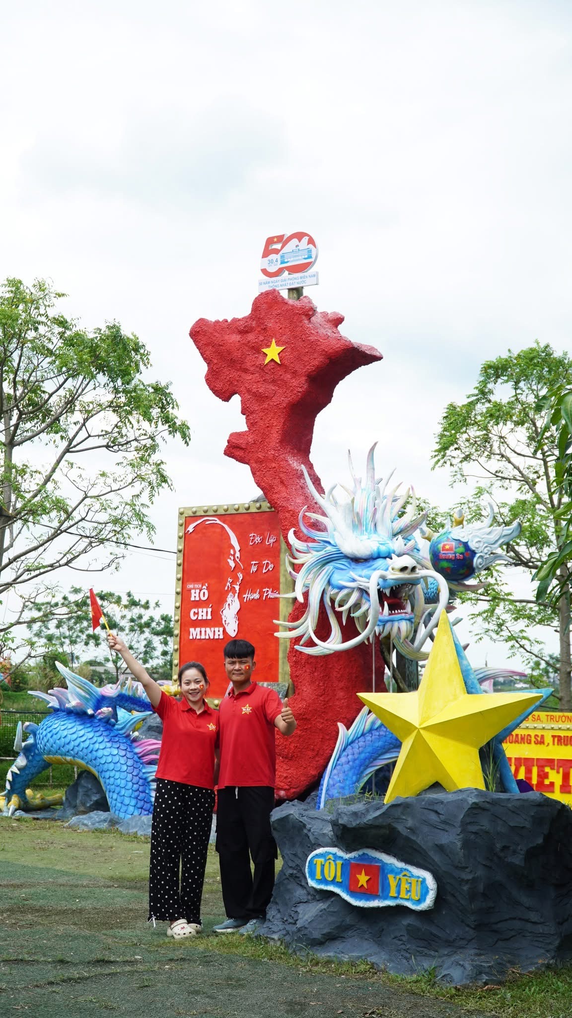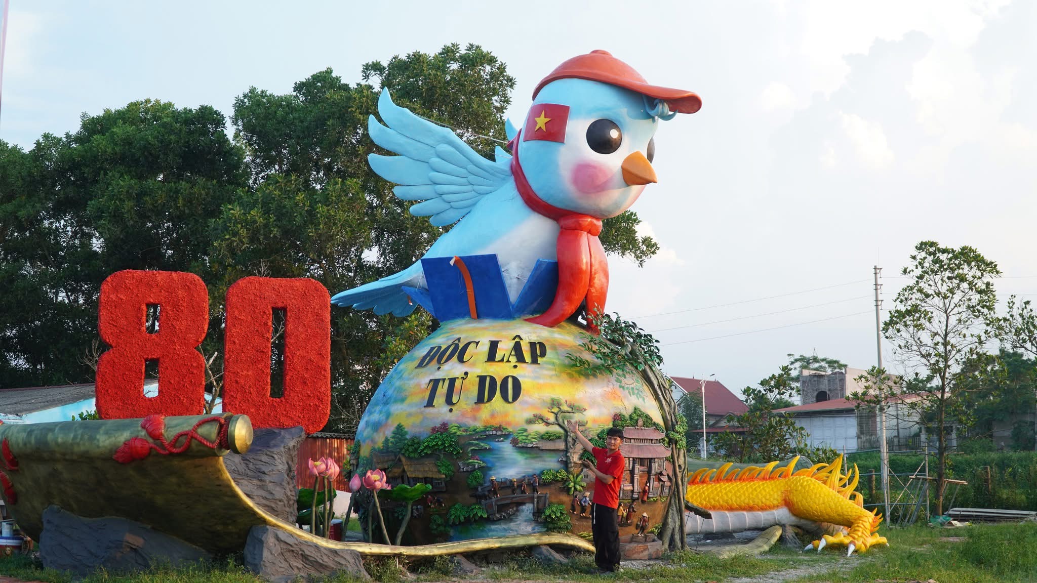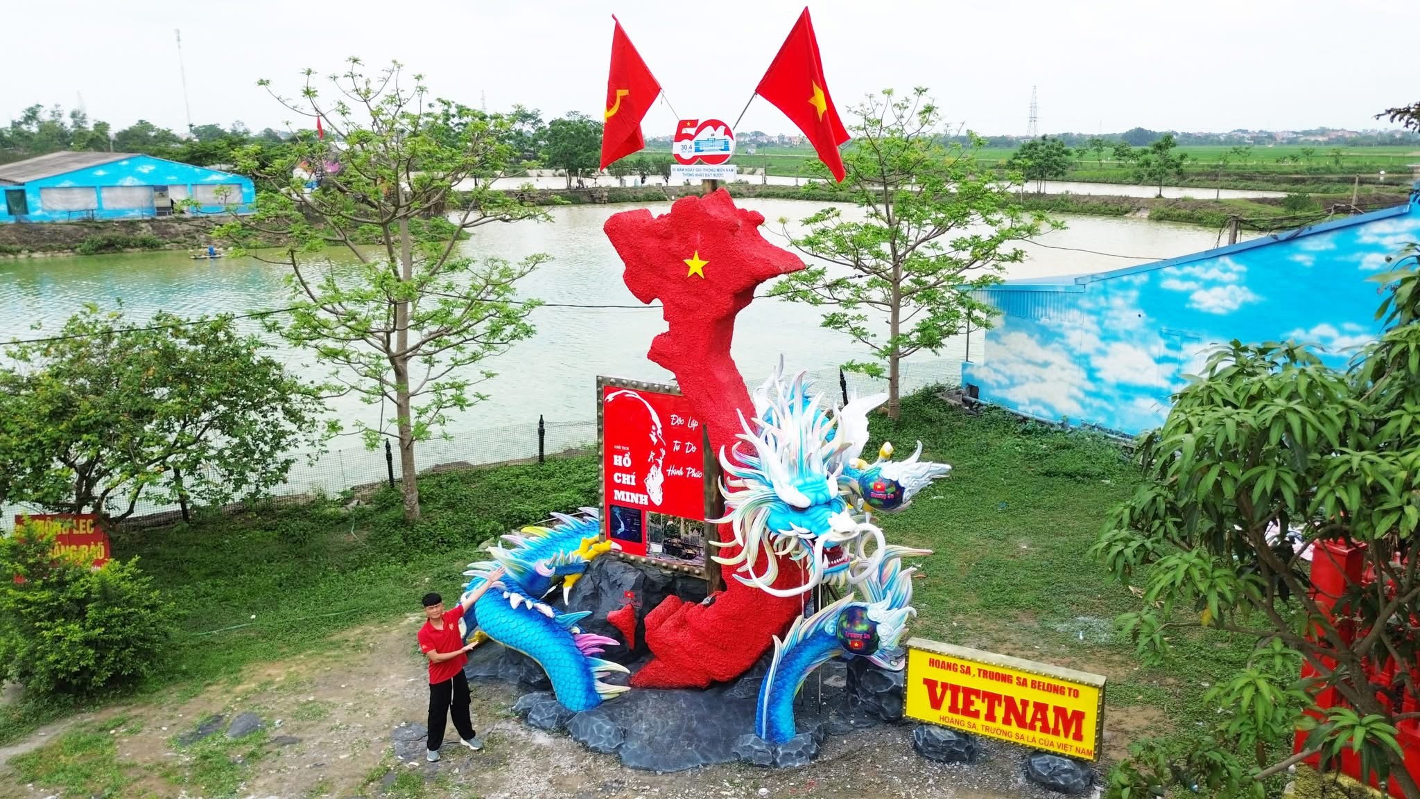 Quan's garden, open free year-round, displays nearly 50 works. During the recent Tet Giap Thin and At Ti, his "Sprouting Dragon" and "Happy Snake" mascots gained significant social media attention for their gentle appearance, contrasting with the fierce imagery often associated with these animals. Beyond Tet mascots, the site also features pieces commemorating major national holidays like 30/4 and National Day 2/9, fostering patriotism and national pride.