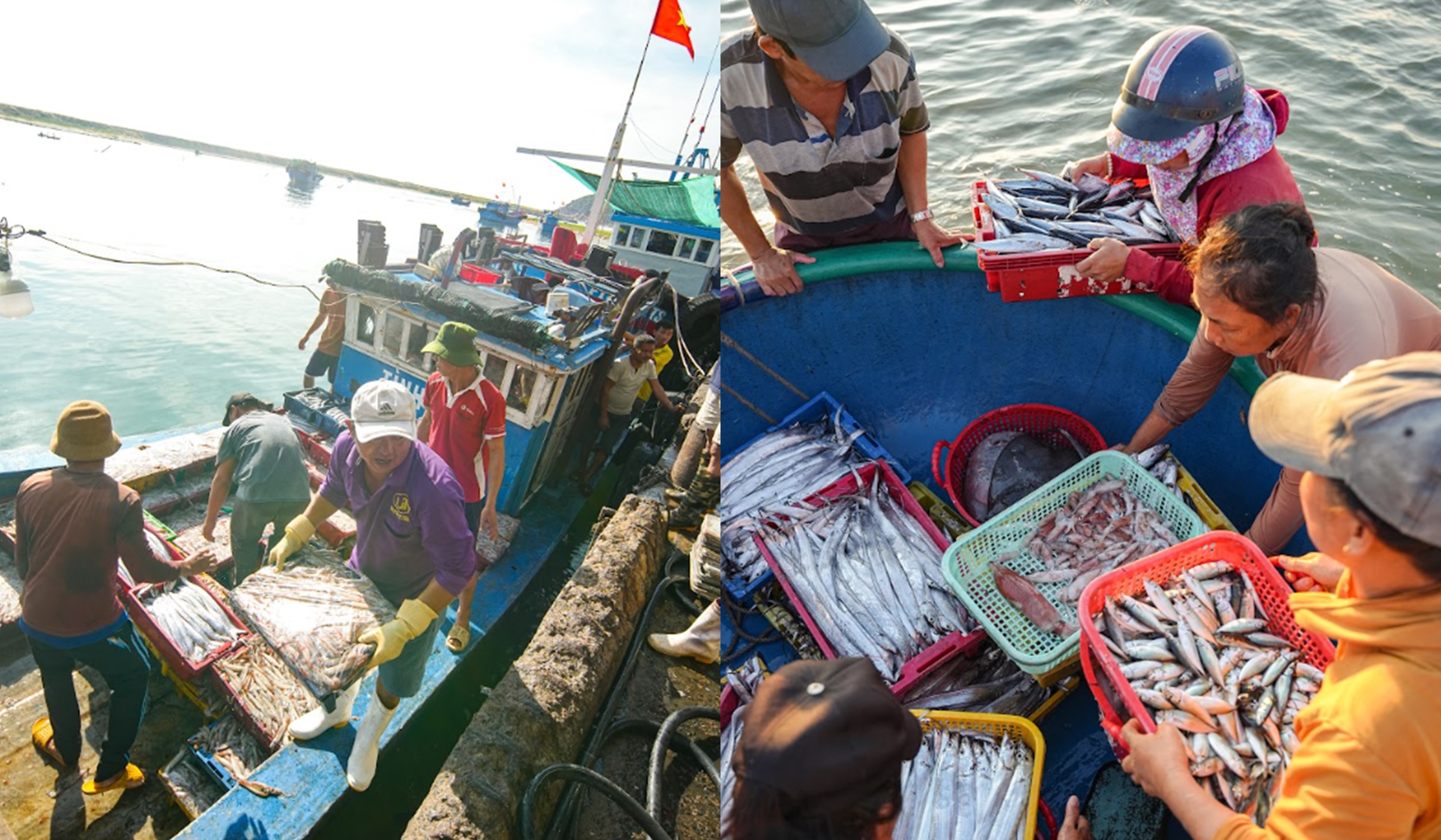 Year-end brings a vibrant rhythm to the South Central Coast. Fishing boats return to shore, their nets heavy with fish and shrimp. The air fills with lively chatter, bargaining, and trade. Young people swiftly unload seafood, while fishermen inspect their gear and gather equipment after their voyages.