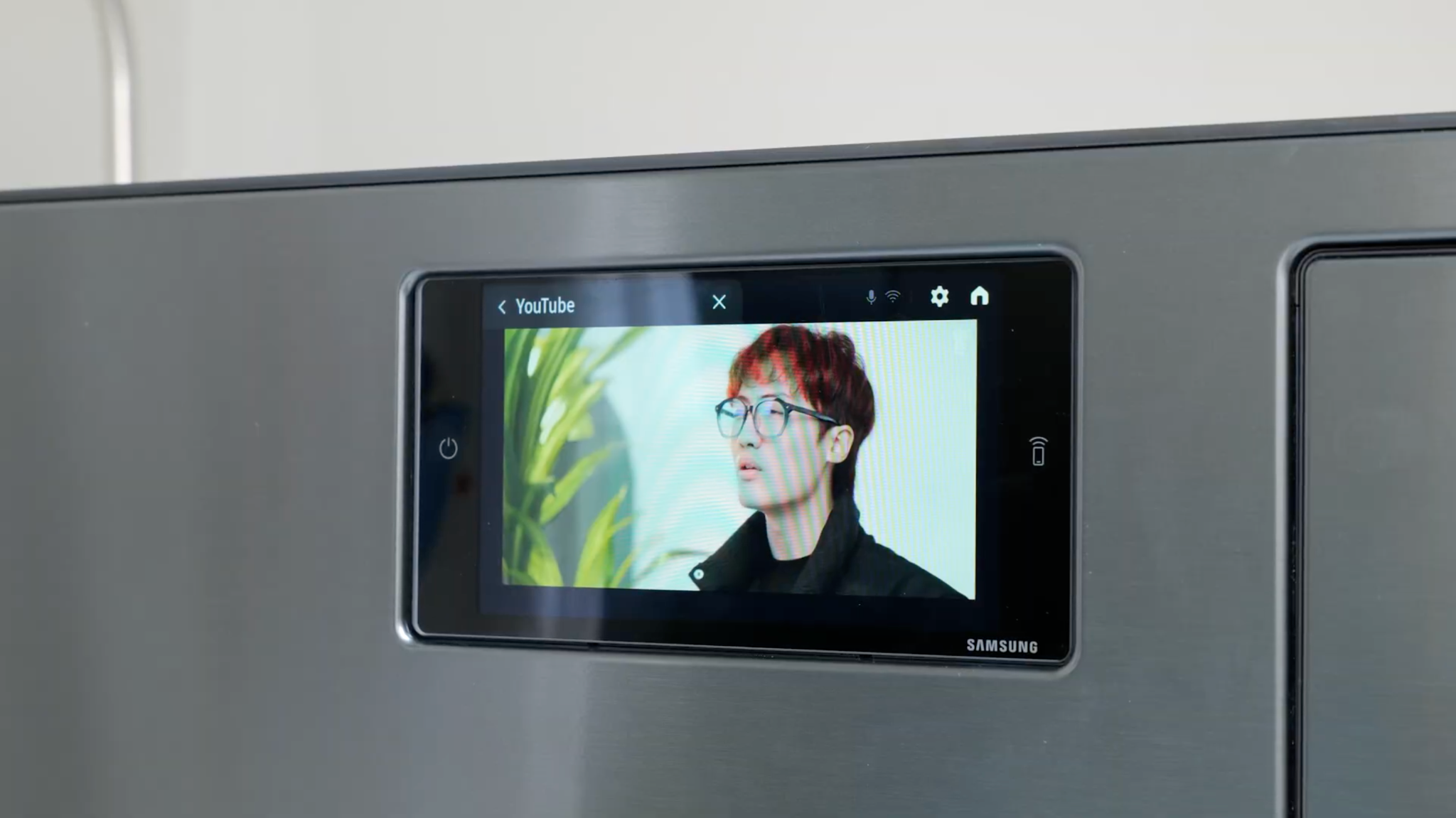 Users can watch YouTube and receive calls on the AI Home screen of the Bespoke AI heat pump washer-dryer. Photo: Samsung
