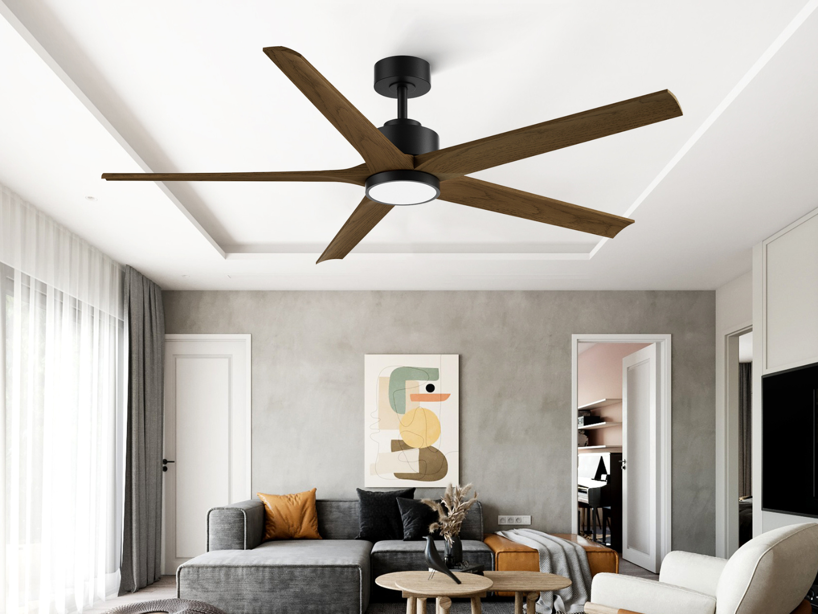 Fanxi ceiling fans serve as both living room decor and highly efficient cooling devices. Photo: Fanxi