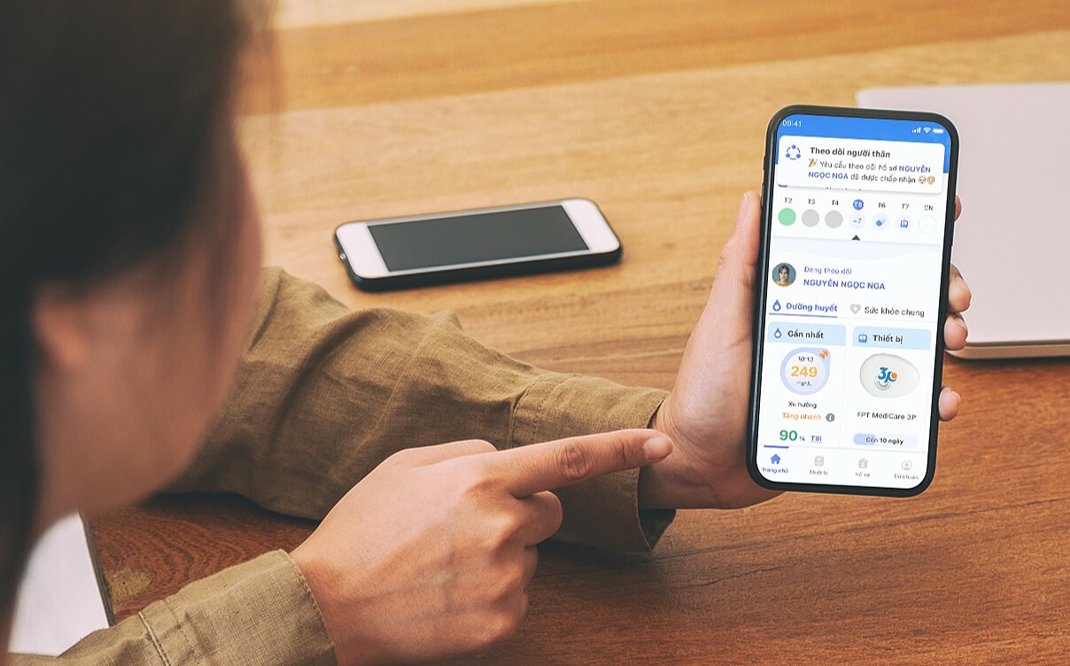 Family members can monitor and support blood sugar control remotely via the FPT MediCare application. Photo: FPT |