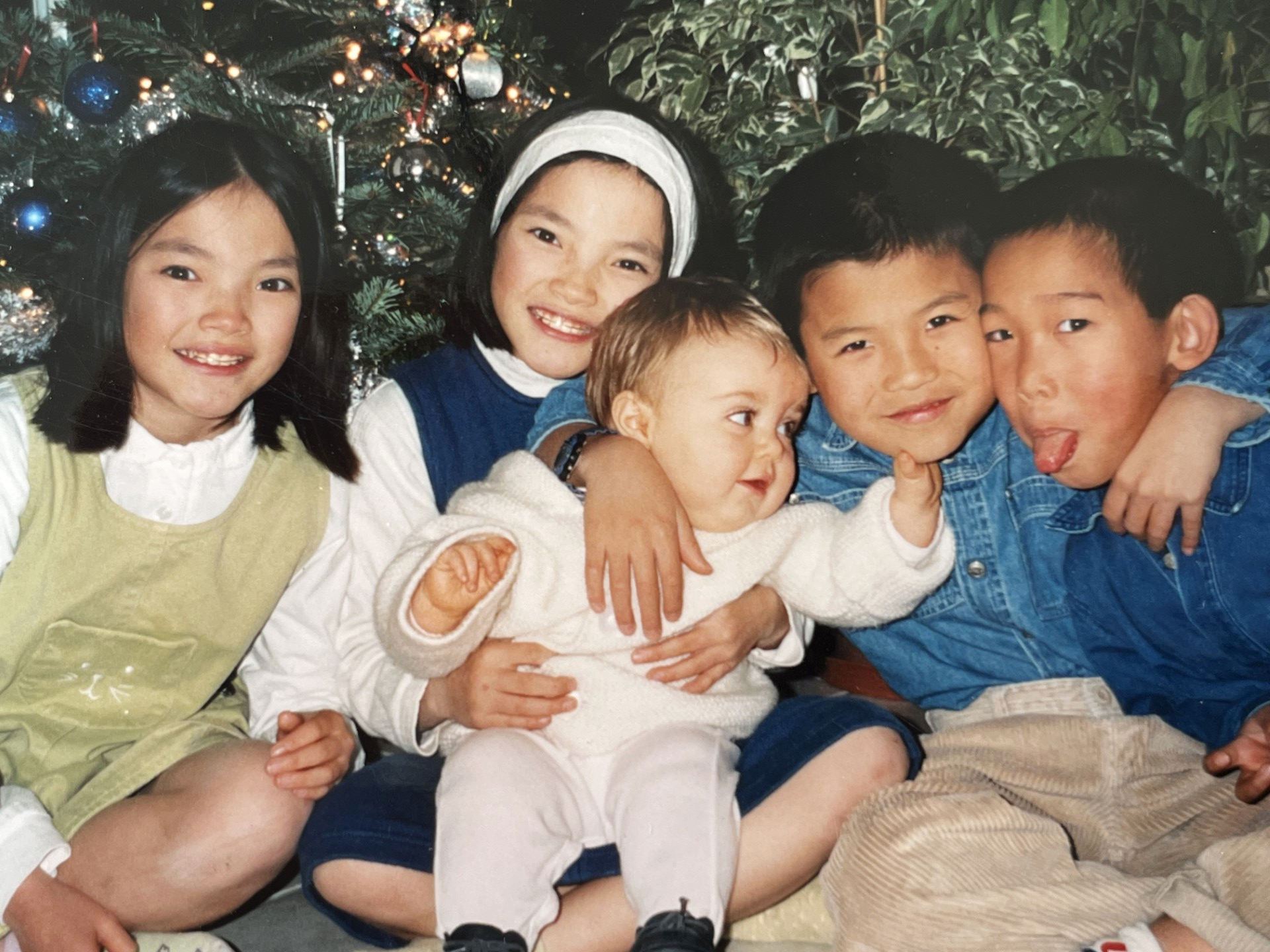 The four Vietnamese adoptees and the couple's biological daughter in 2003. Photo: Provided by the family