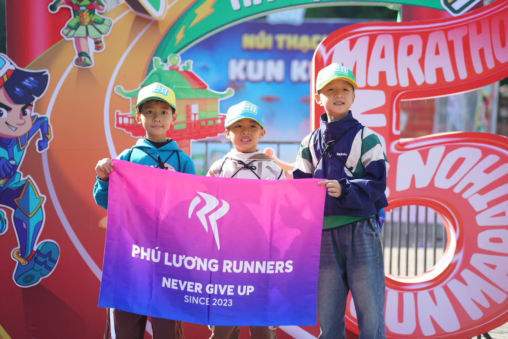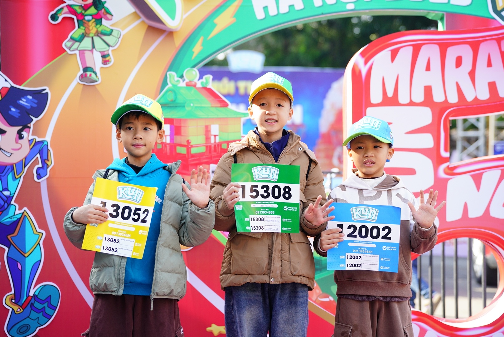 Three children from the Phu Luong Runners Club checked in after collecting their bibs. They confirmed extensive training in the days leading up to the race, each aiming for a first-place finish.