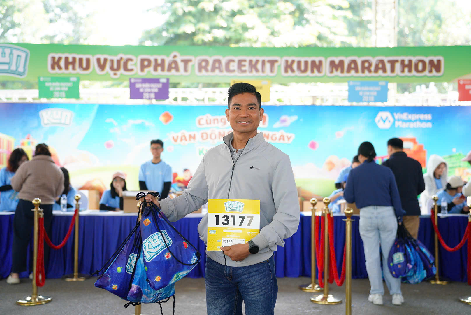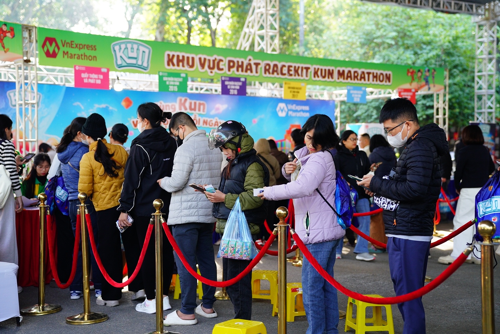 Kun Marathon, a free race for children aged 6-10, began distributing bibs and race kits to parents on 28/11. Hundreds of parents started queuing at 8 am, lining up at designated counters based on their children's birth years to finalize registration.