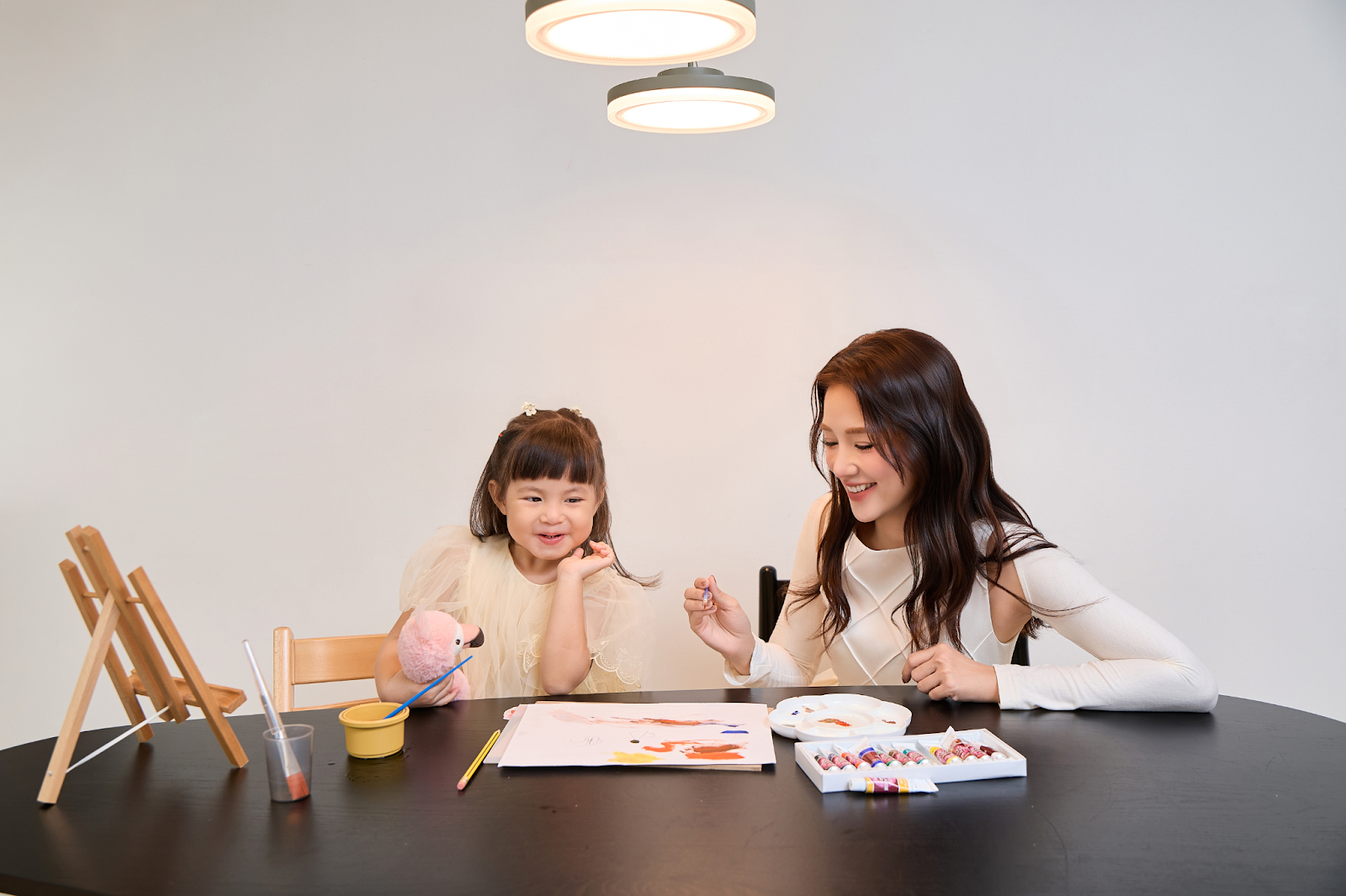 Additionally, she emphasized practical factors, such as easy-to-clean properties, which help quickly handle stains from daily activities. After more than a year of use, the paint color has maintained its durability and fresh look, suitable for a space where young children frequently play and create.