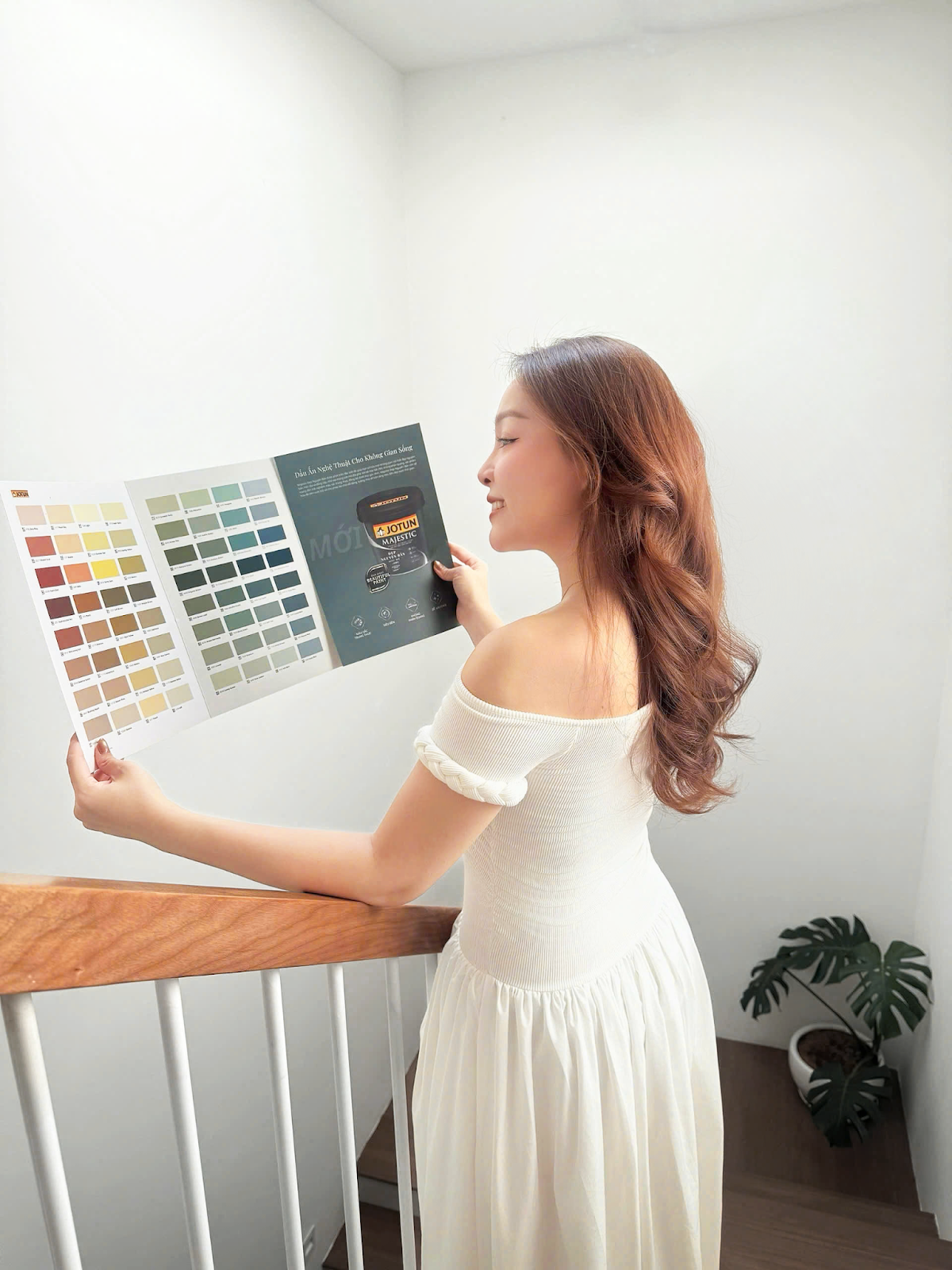 For beauty blogger Trinh Pham, paint color plays a crucial role in inspiring work and supporting filming activities. She says "dressing up" her workspace is as important as taking care of herself, as it nurtures her daily creative inspiration. She understands that color often plays a decisive role in evoking emotions and stimulating creativity.