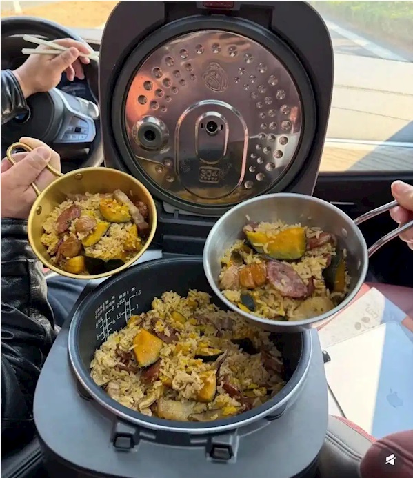 When vehicles could no longer move, congested highway sections transformed into "community living rooms." Many drivers took the opportunity to get out of their cars to exchange food, play mahjong right on their car hoods, and even brought out mini gas stoves to cook instant noodles for a meal in the middle of tunnels.