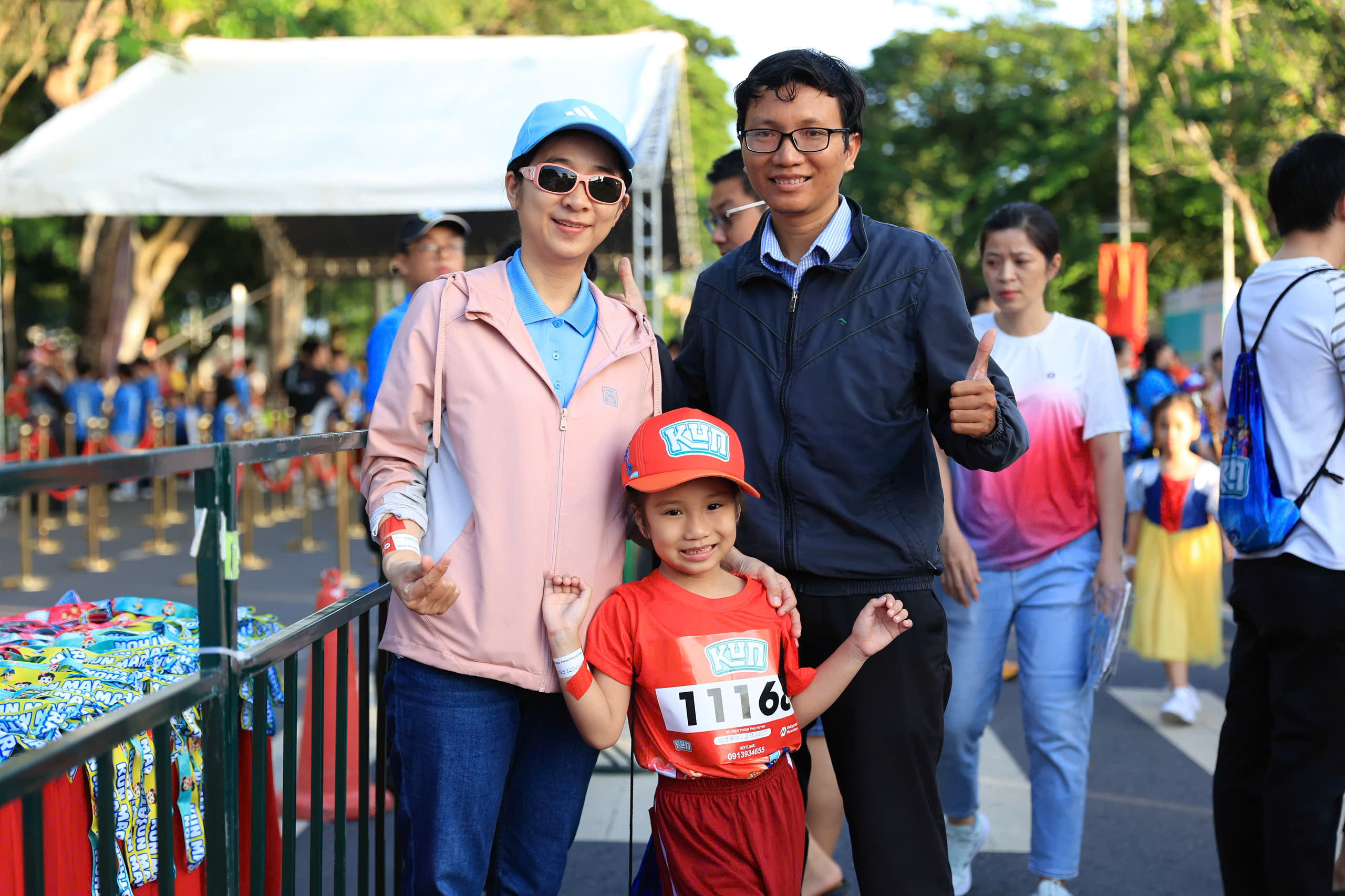 On the morning of 13/9, over 2,000 young runners and their parents gathered at Hau River Park. The children arrived early to warm up, interact with their peers, and get accustomed to the race atmosphere. |