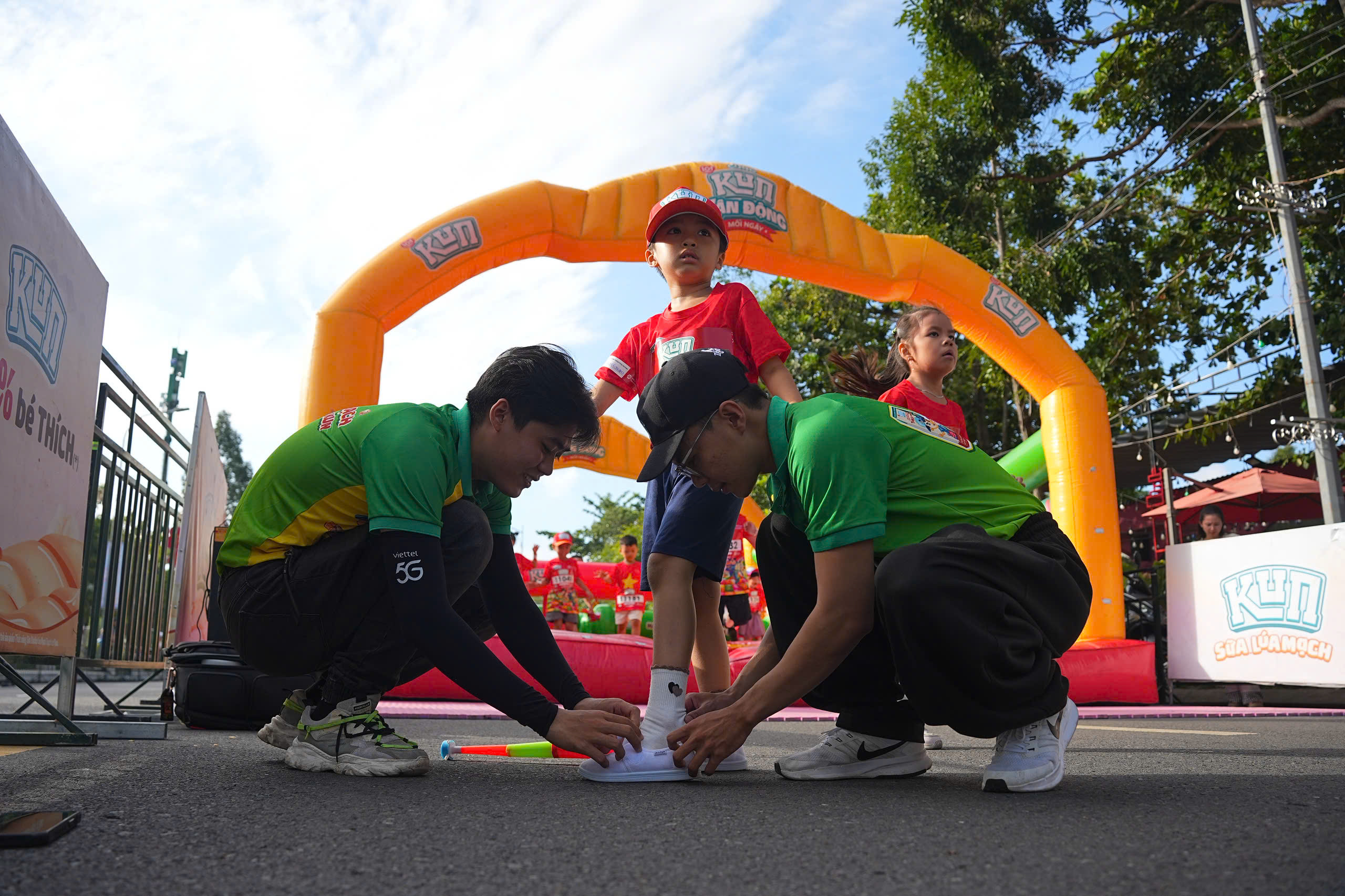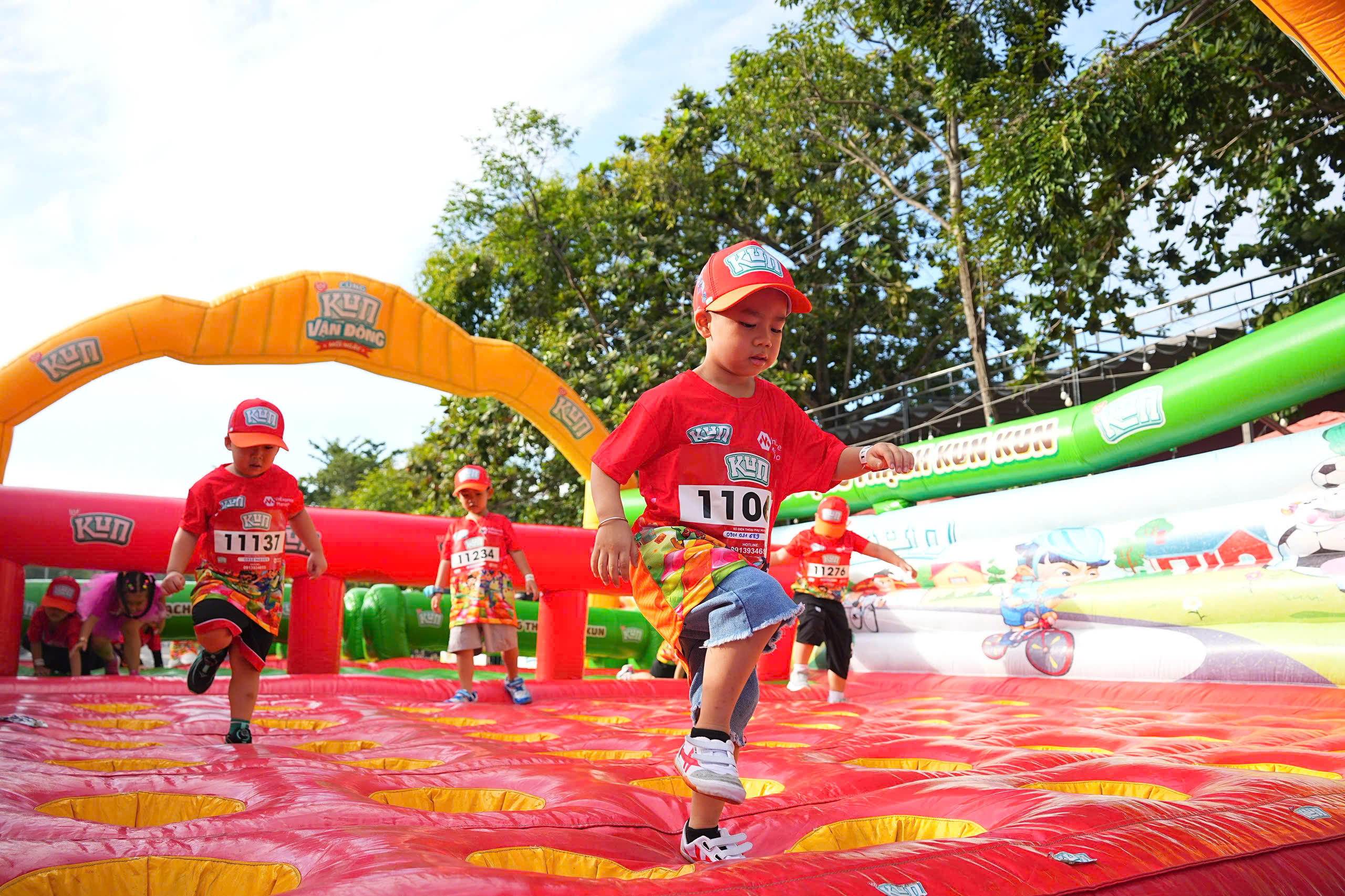 The nearly 1 km racecourse was dynamically designed with a series of obstacles such as bouncy houses, inflatable houses, climbing walls, and tunnels, creating an engaging environment. Despite the continuous challenges, the Kun runners remained enthusiastic. Many children ran and played with their friends, smiles lighting up their faces. |