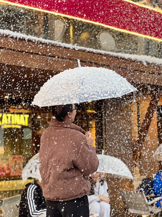 Many stores organize snow spray activities to surprise dine-in customers. Photo: Katinat |