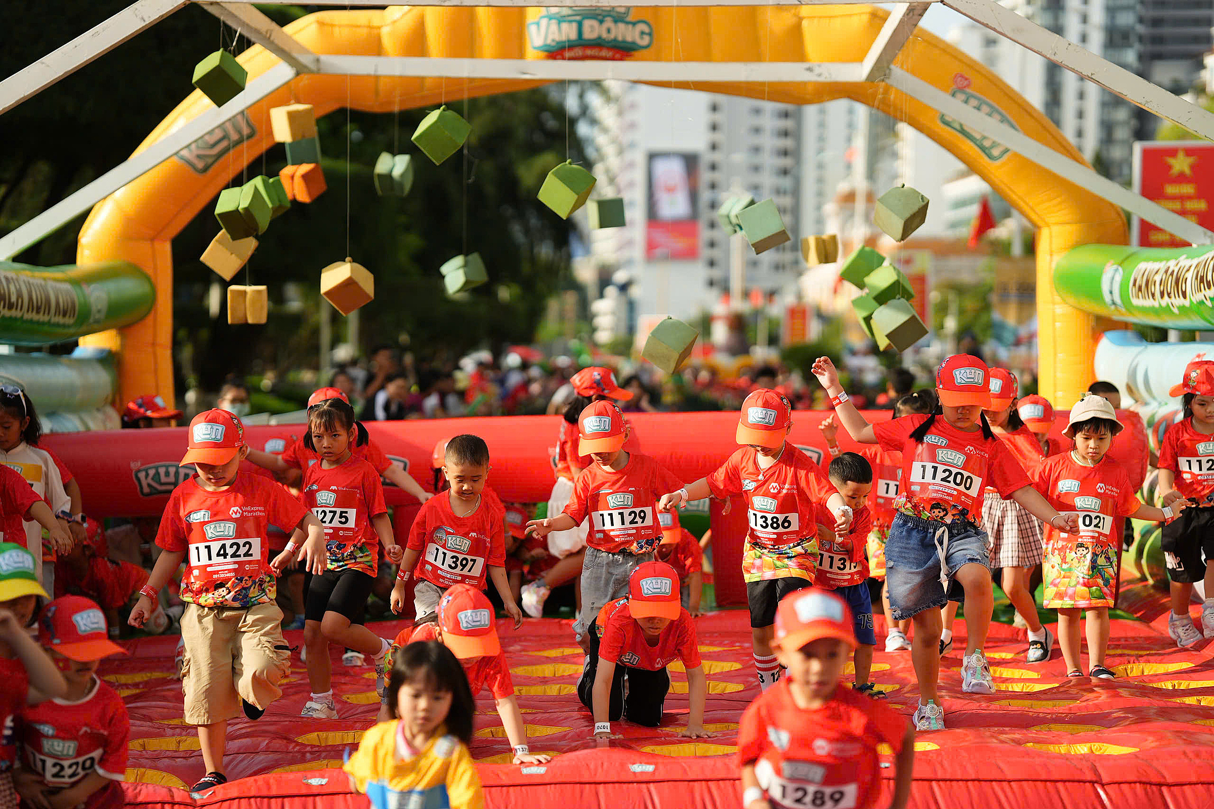 The Kun Marathon is a children's race within the framework of the VnExpress Marathon, previously held in Hanoi, Ho Chi Minh City, Hue, Ha Long, Da Nang, and Hai Phong, attracting thousands of children each season. The event usually features celebrities such as People's Artist Xuan Bac, soccer player Duy Manh, legendary player Hong Son, siblings Long Chun and Long Be, Boi Boi, and Ngan Chi.