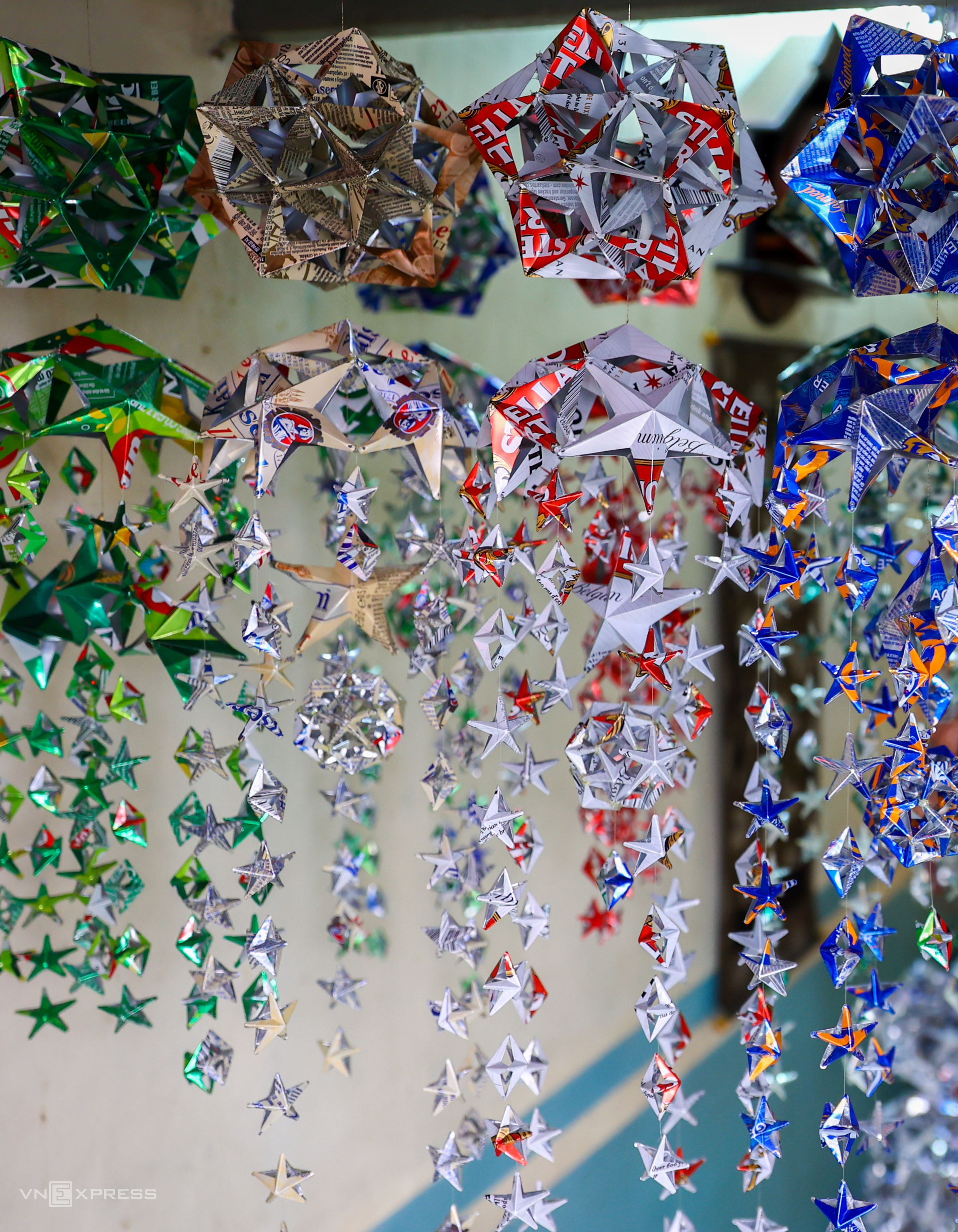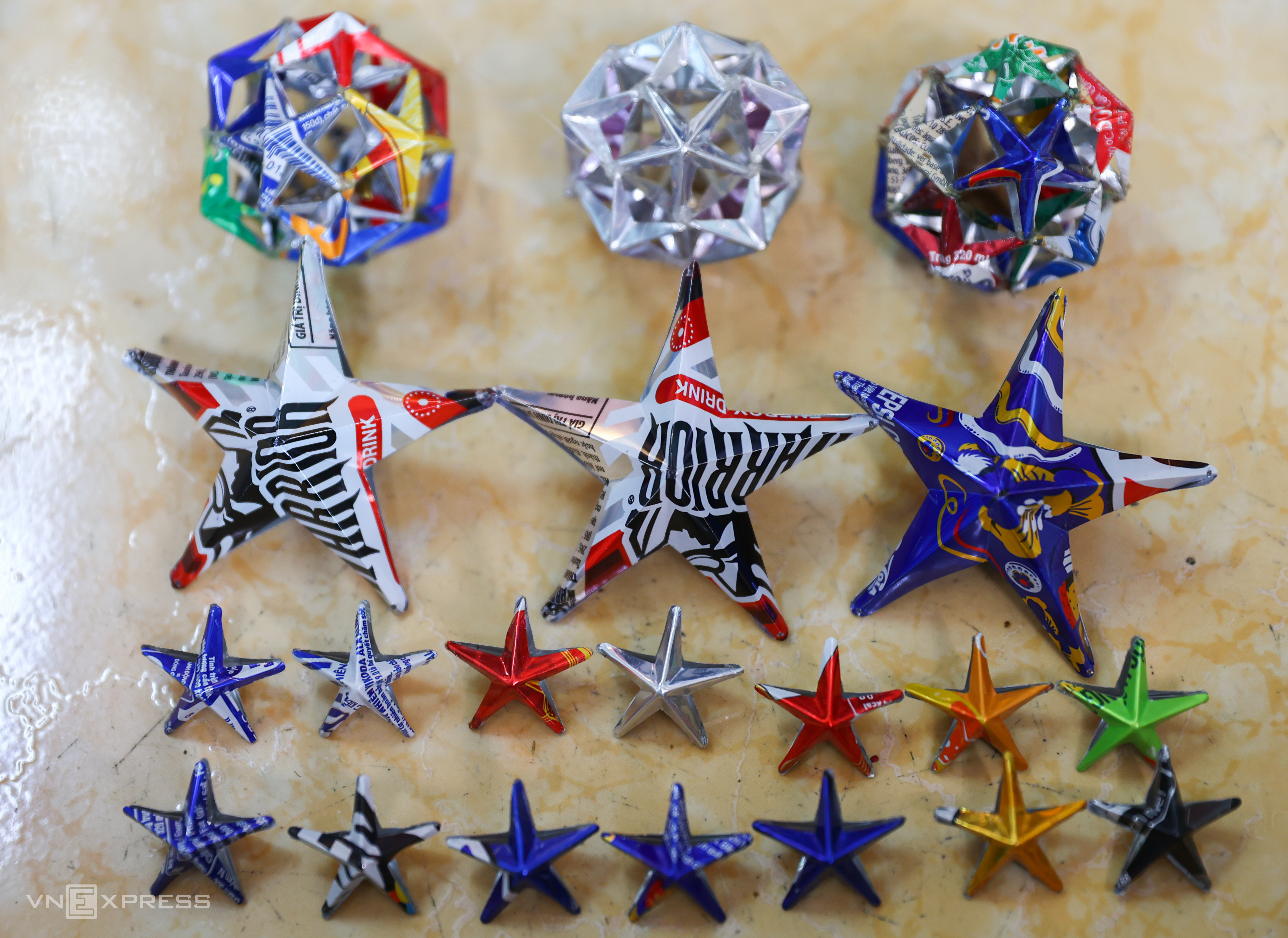 He has now designed about 6 lantern models, priced from 40,000 to 1.6 million VND. The price depends on the number of cans used, the frame, and the decorative accessories.