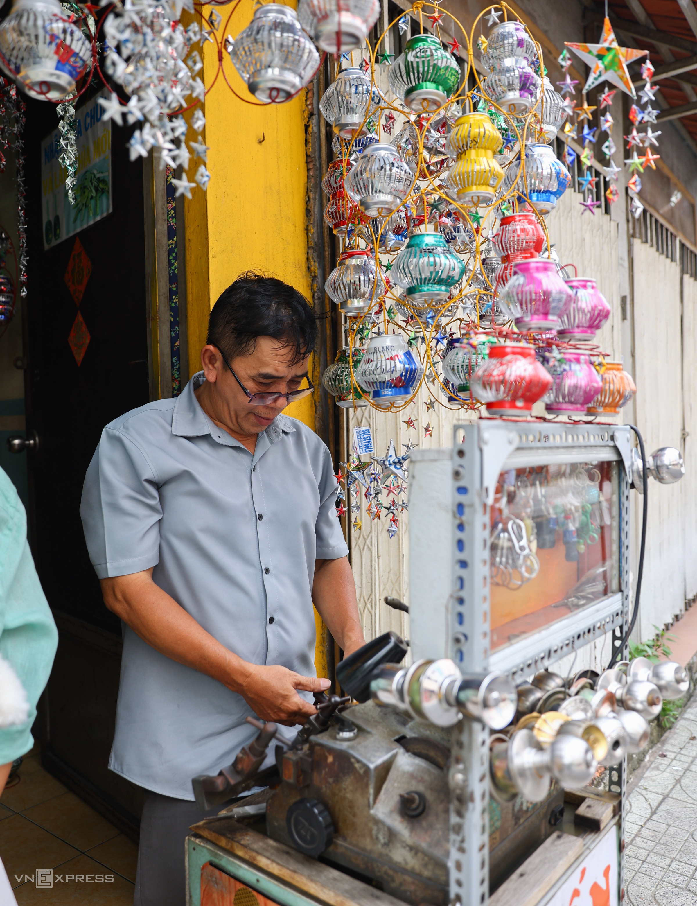Besides making lanterns for the mid-autumn festival, his primary occupation is locksmithing, a trade he has pursued for over 30 years. |