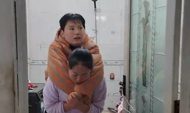 Liu carries her daughter-in-law for personal hygiene, 10/2025. Photo: QQ |