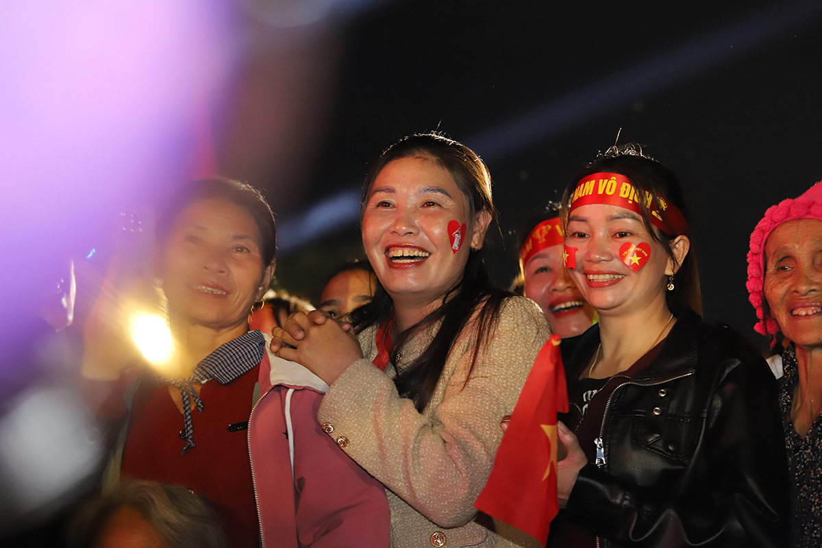 Ms. Ngoc (center), cheering for Dinh Bac and Vietnam U23 during their match against China U23 on the evening of 20/1. Photo: Duc Hung |
