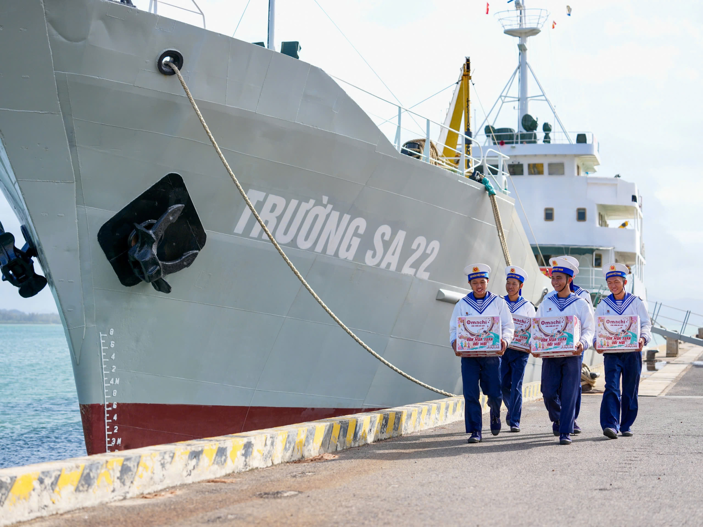 The brand sent Omachi "Tieng trong hoi xuan" boxes to Truong Sa with wishes for a renewed spring. Photo: Masan |