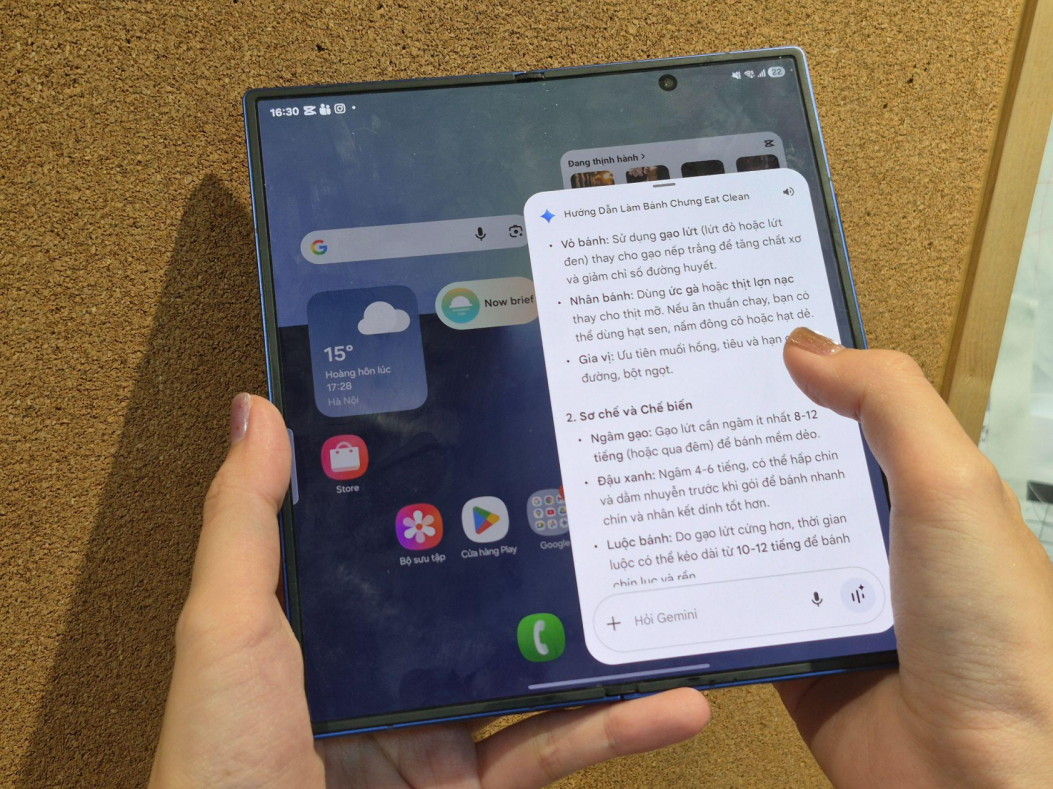 According to Hoang Anh, the advantage of using Gemini on a large-screen device like the Galaxy Z Fold7 is the ability to view suggested options in detail. She could compare, adjust, and visualize them more clearly before applying them to her living space, thus creating a Tet living room that felt both fresh and comfortably familiar.