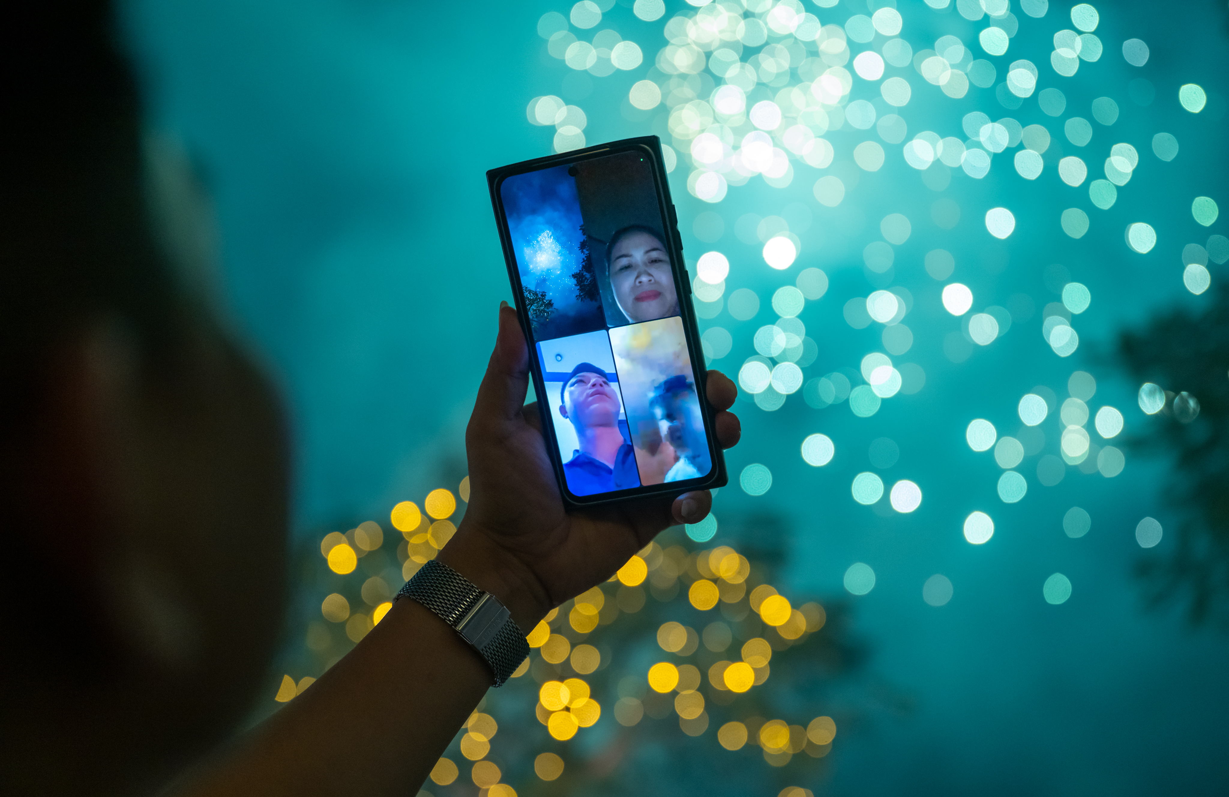 Elsewhere, a woman made a video call to relatives overseas, sharing the fireworks display with them remotely.