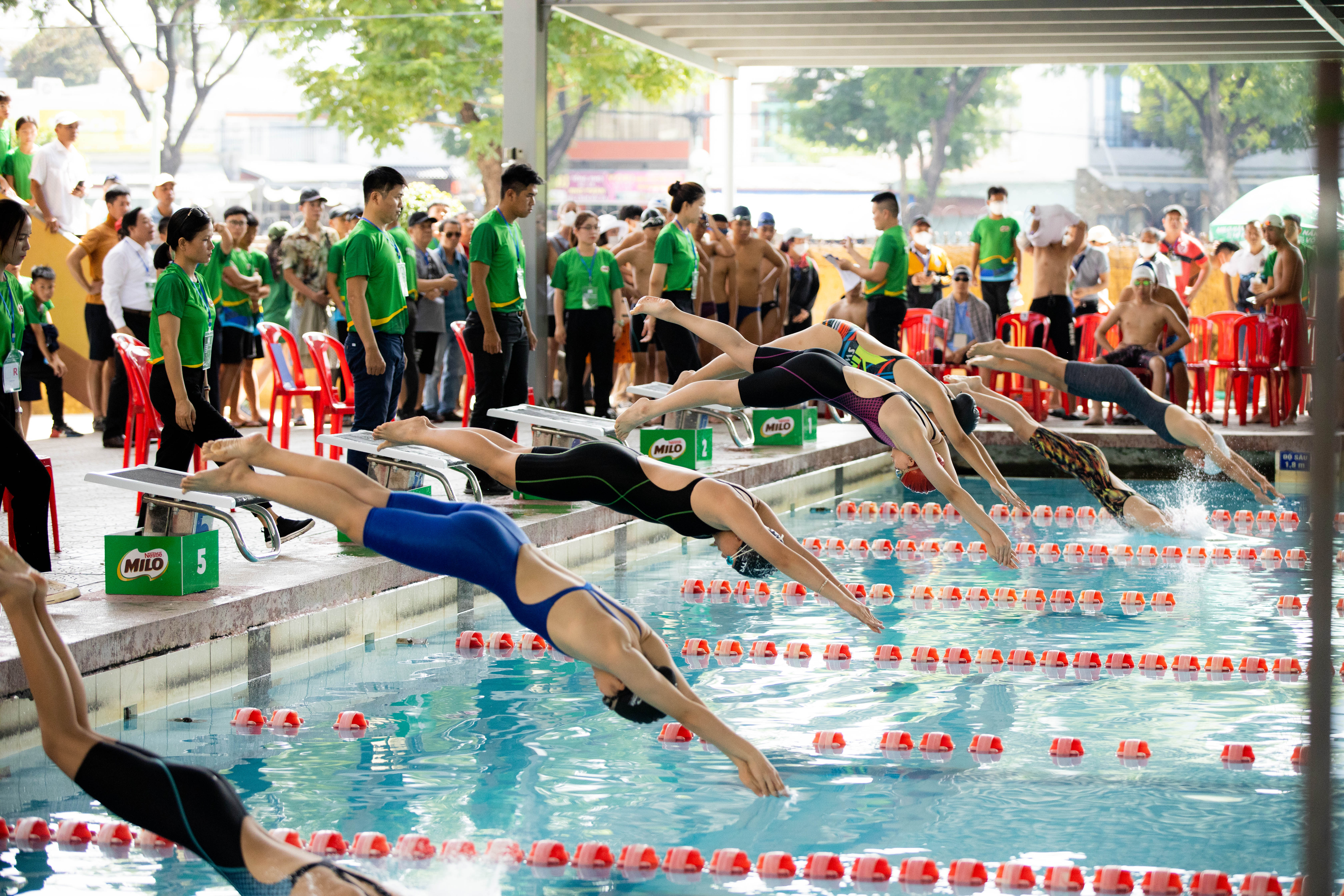School swimming competition within the framework of the "Nang dong Viet Nam" program organized by Nestle Milo.