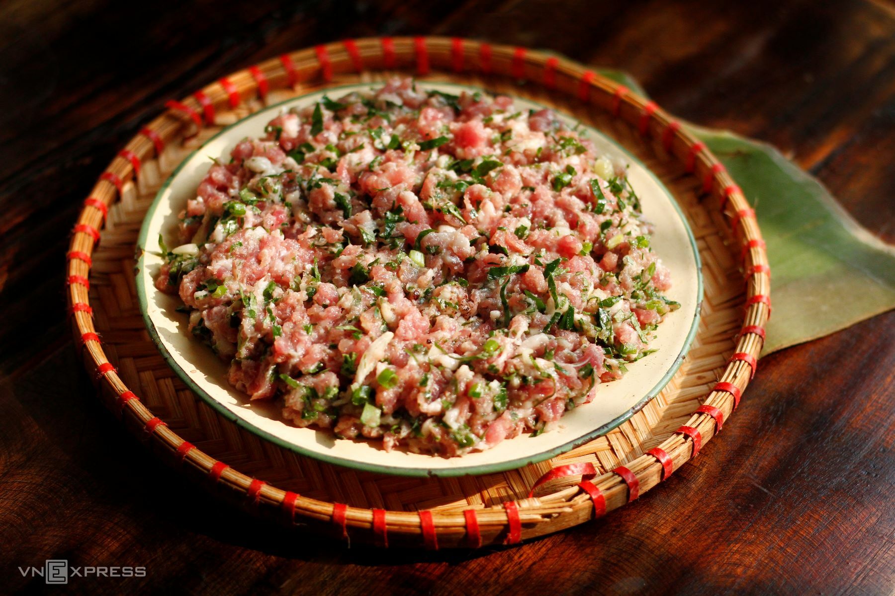 A filling with the right moisture content will help the steam from the meat keep the leaves soft during frying, preventing them from burning too quickly. Traditional seasonings include fish sauce, salt, pepper, and chopped Piper lolot leaves for added flavor. Depending on regional preferences, wood ear mushrooms or glass noodles can be added for texture and a richer taste. The filling should marinate for at least 15 minutes before rolling to allow the flavors to meld.
