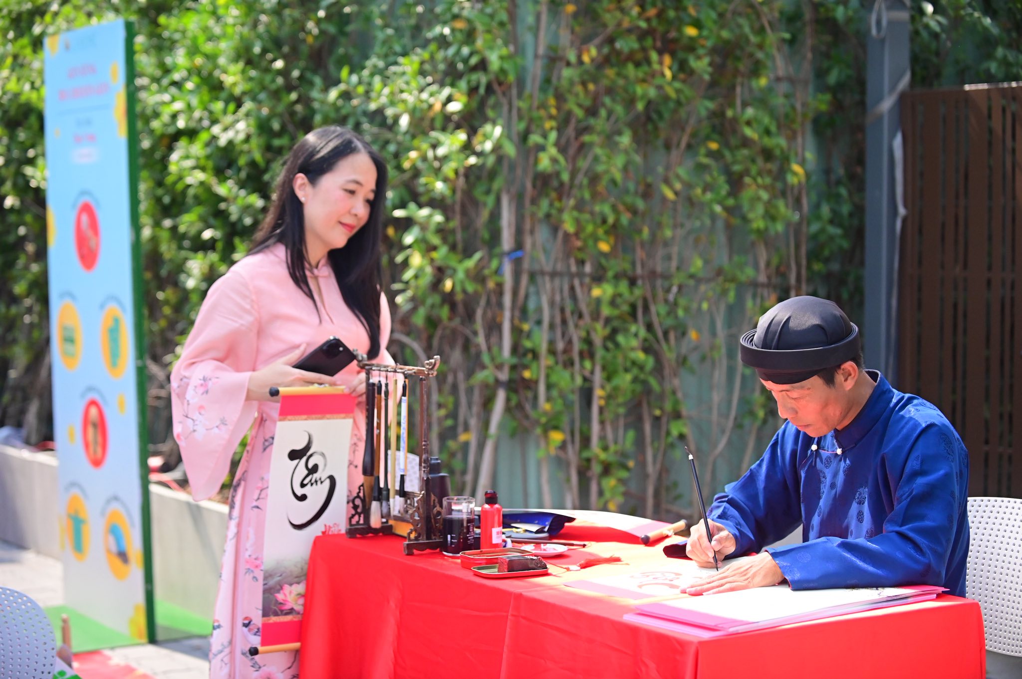 Residents receive calligraphy from a scholar and experience various stall activities within the project premises.