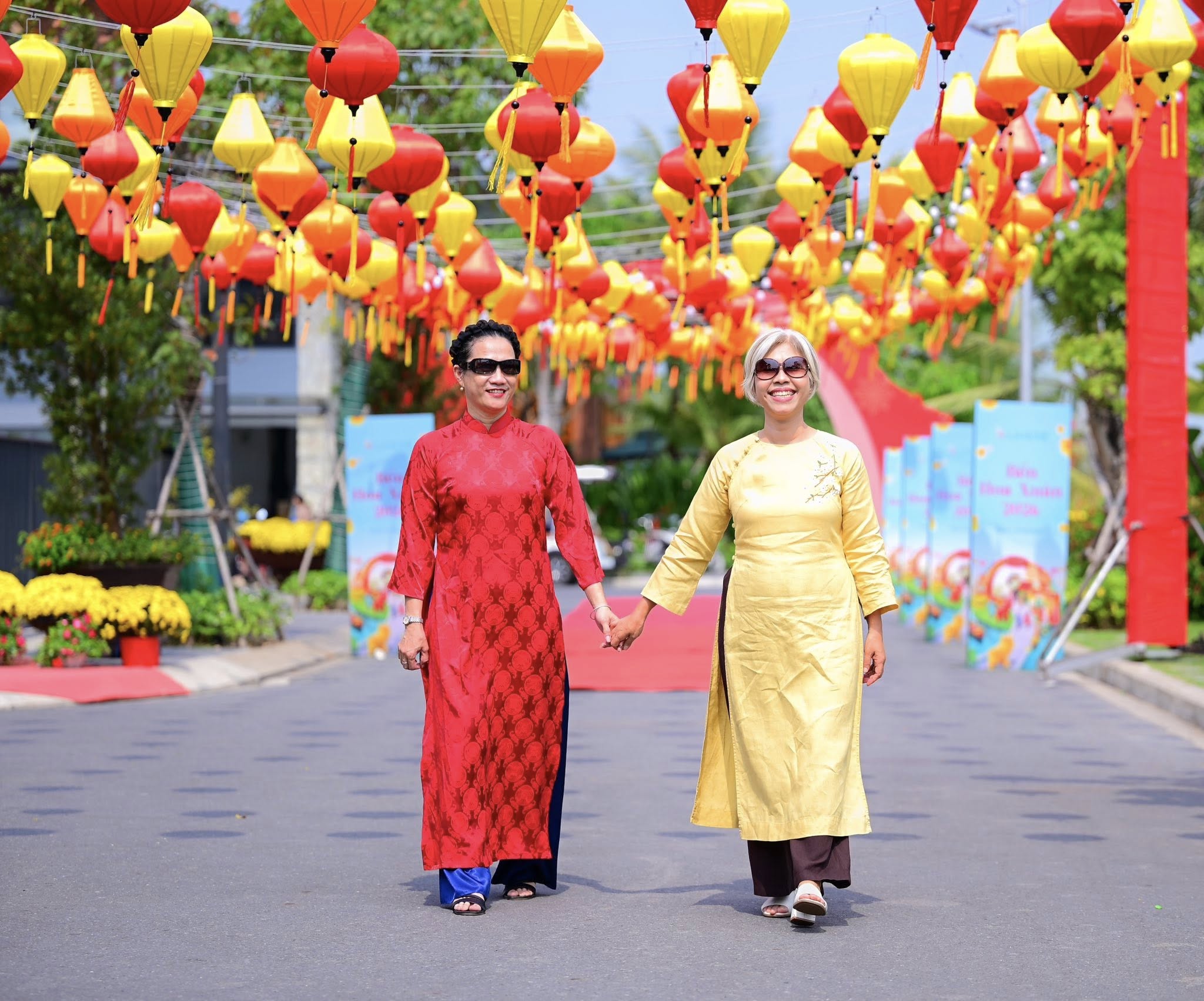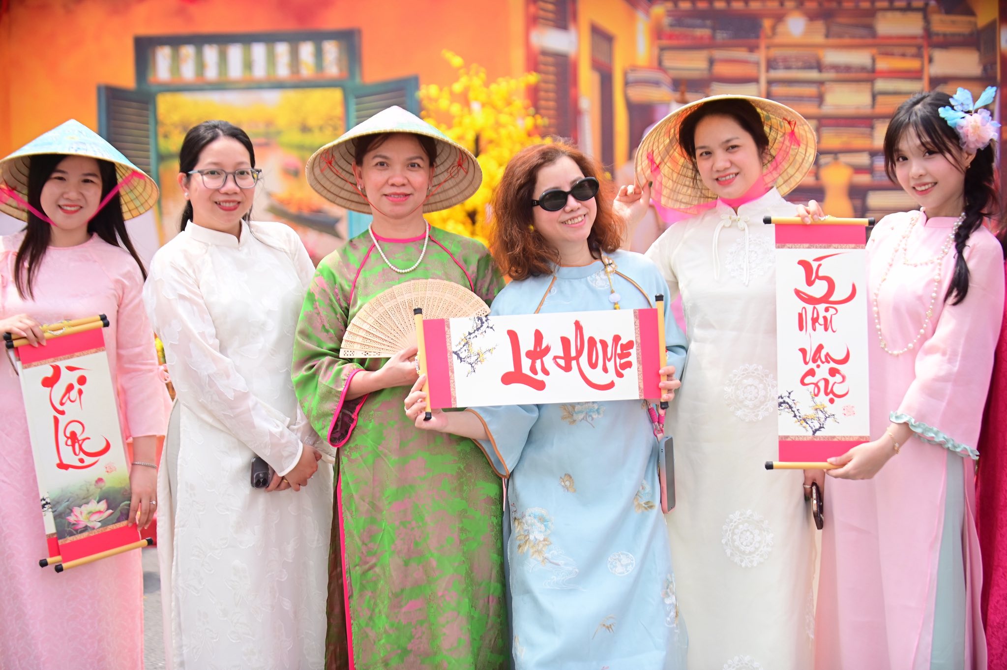 A photo area recreates traditional Southern tailor shops. A representative for LA Home's developer stated that Southern culture is a continuous inspiration for the urban area's design. For this first year of Tet activities, familiar images were chosen to foster a connection with residents.