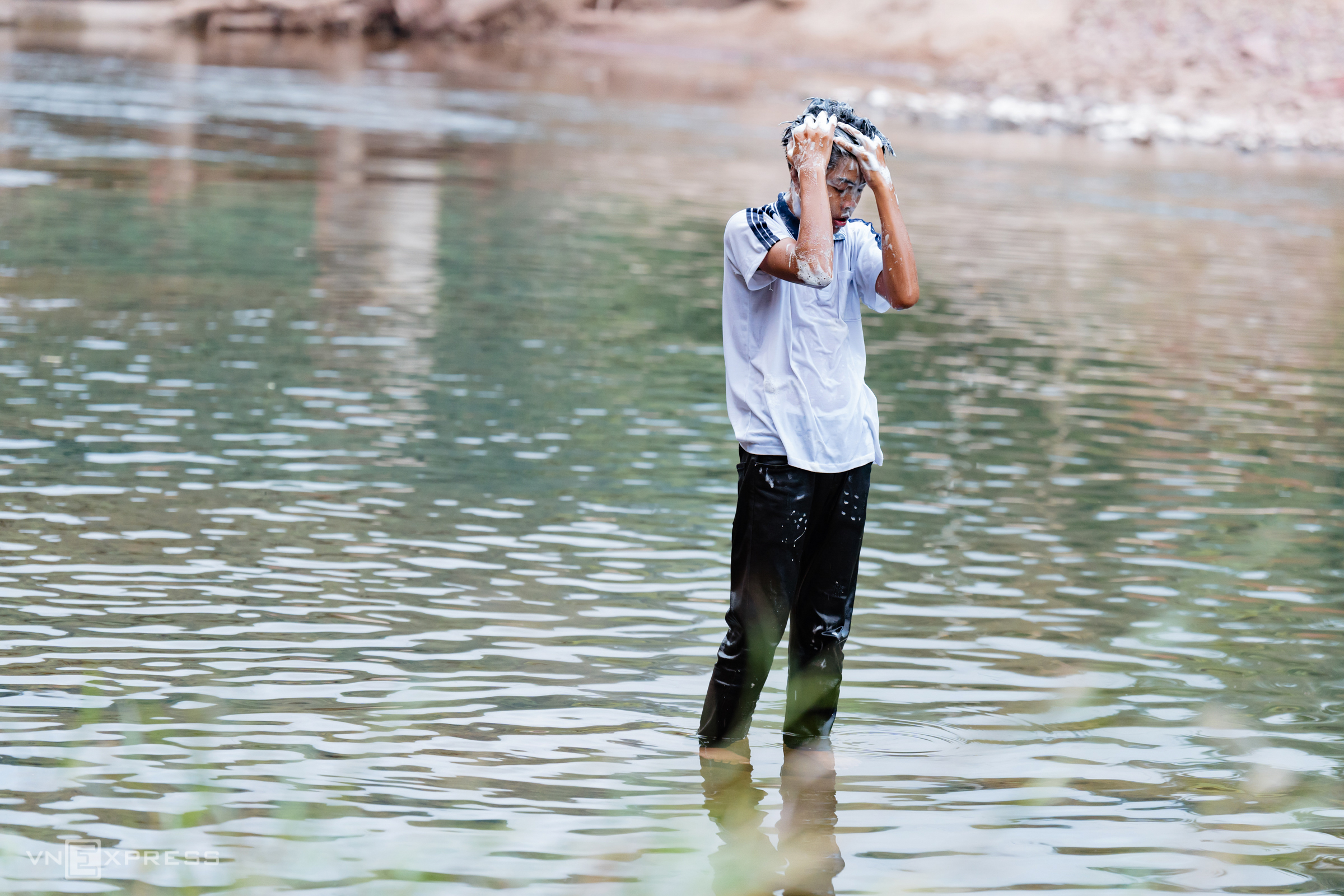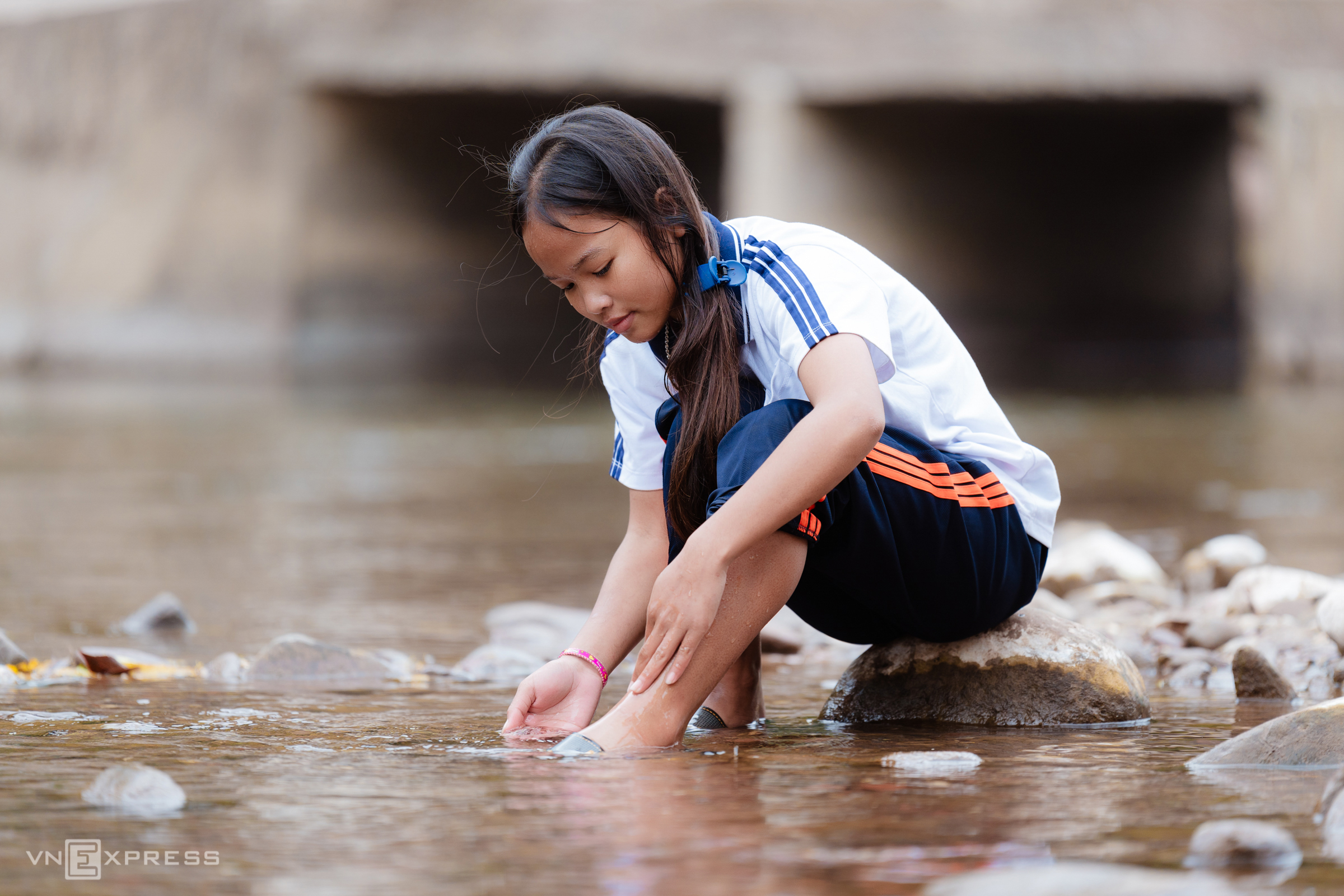 Y Thuy goes to the stream to bathe and do laundry after school. Tung Dinh.