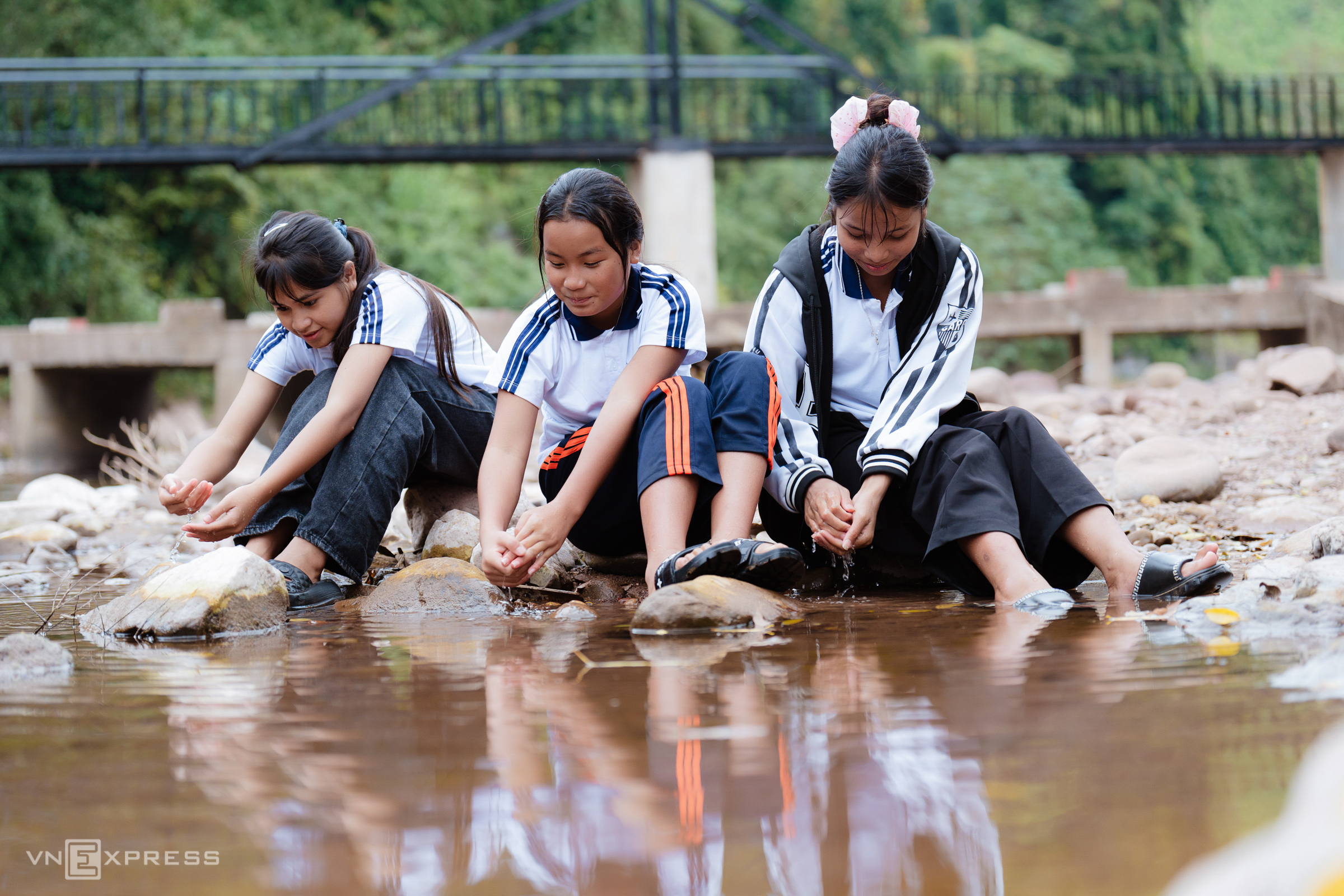 Y Thuy, an 8th grade student, recounted that she and other female students often had to bathe and do laundry in the stream, in the same area as the male students. Teachers would assist or guide them in dividing bathing times for boys and girls. However, Thuy still felt shy and carefully observed her surroundings during personal hygiene.