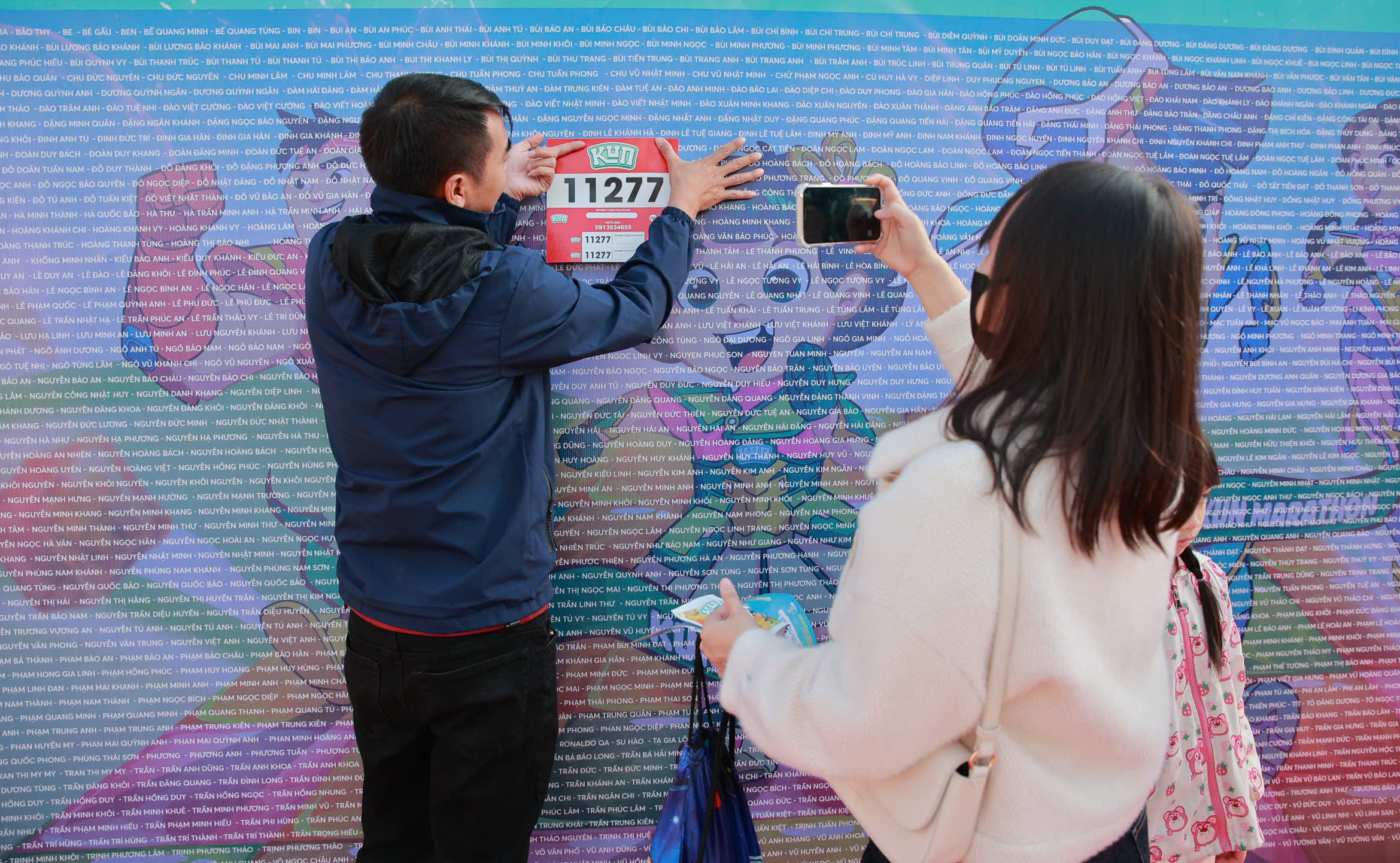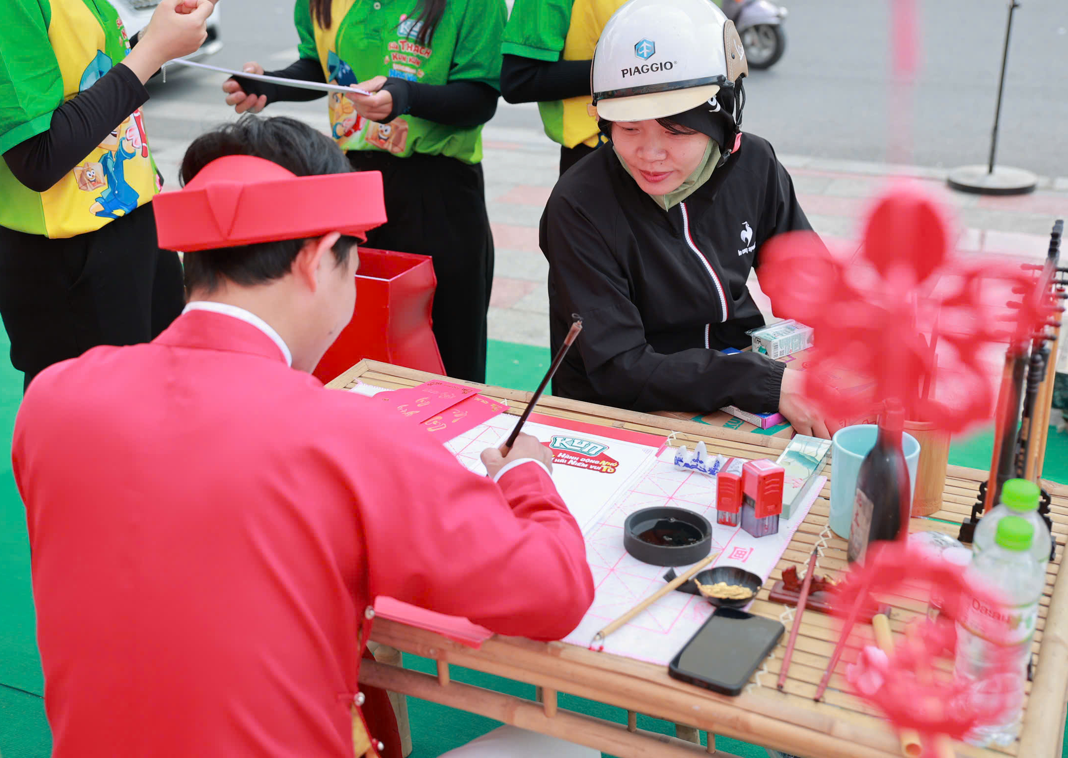 The Kun Marathon bib collection area on the morning of 19/12 also featured a traditional calligrapher, known as "Ong Do." He readily wrote couplets upon request for parents and children, delighting many young participants.