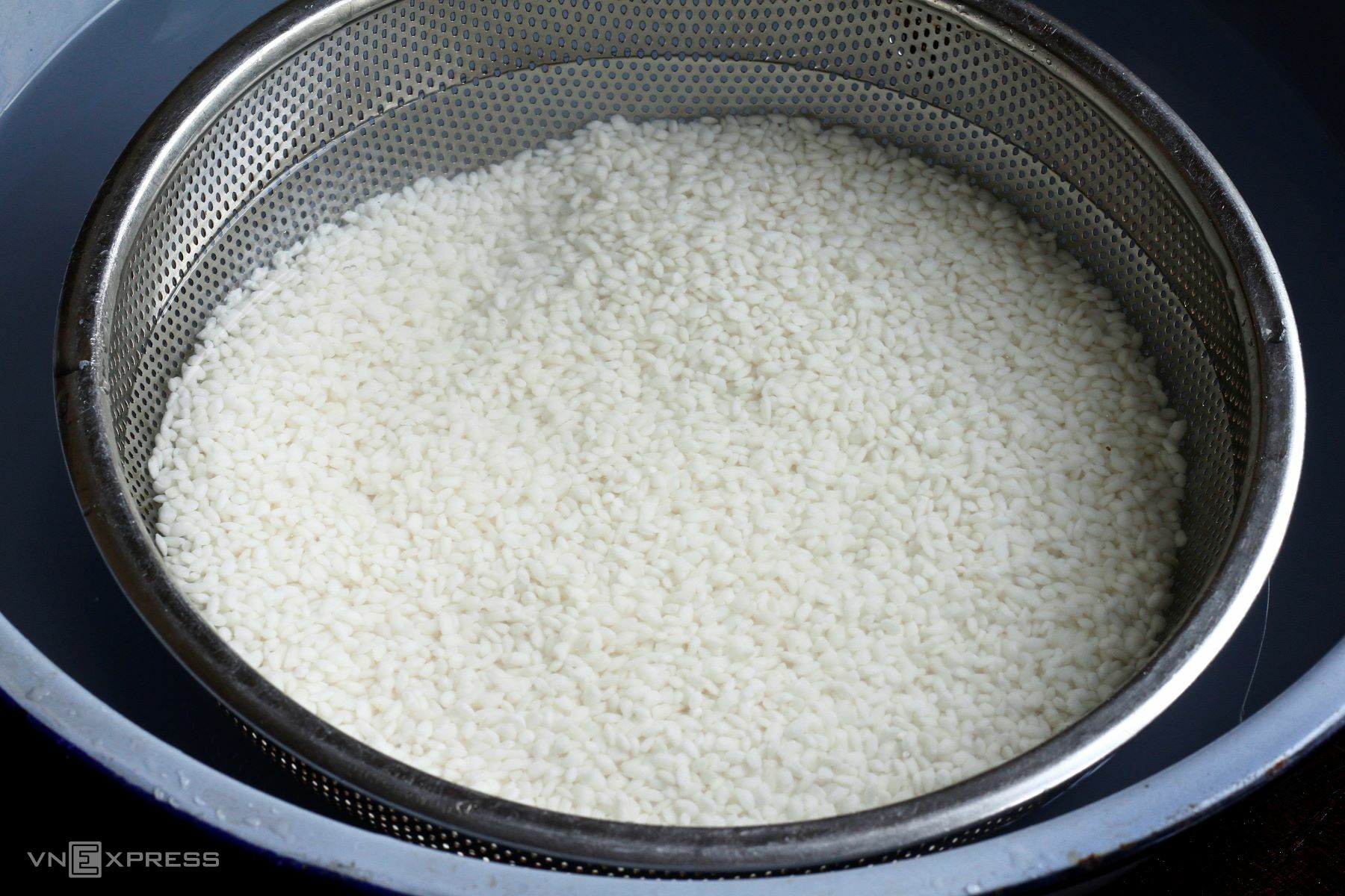 Experienced cooks typically soak sticky rice for 6-8 hours before steaming. Photo: Bui Thuy
