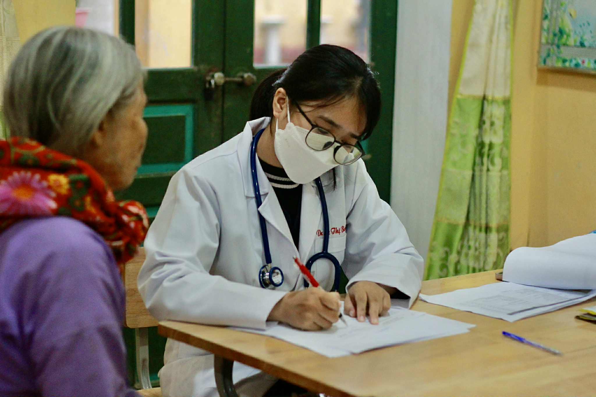 Dr. Ngoc examines a patient during a field trip to Yen Bai in 2023. Photo courtesy of the subject