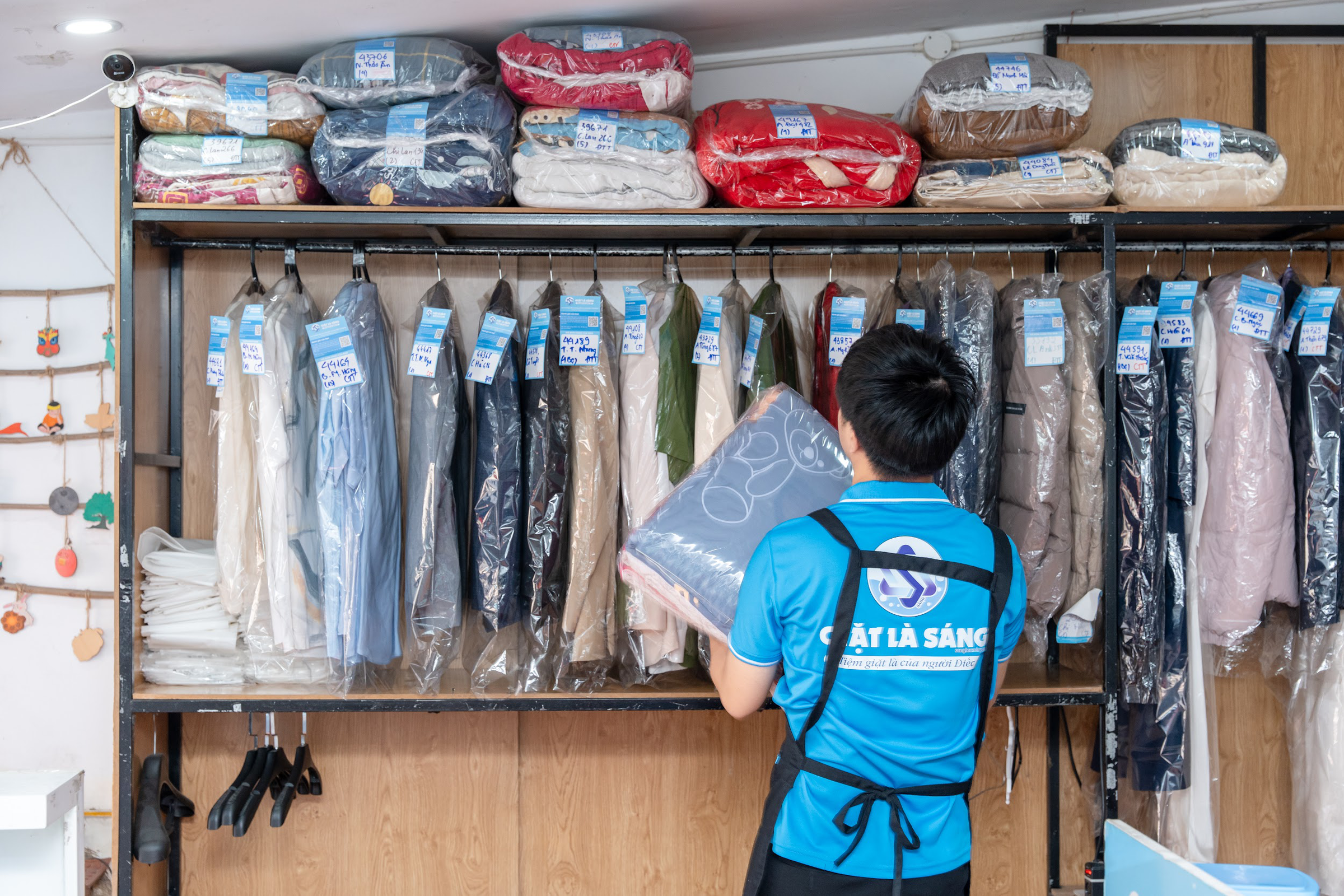 Ms. Luong Thi Kieu Thuy, the owner of the shop, gradually lost her hearing from 10 years old. While studying sign language, she observed that many deaf individuals struggled to find employment or could only secure precarious jobs with unstable incomes. Driven by a desire to create stable employment for herself and others in similar circumstances, she opened the first Giat La Sang facility in 2020. Today, the model has expanded to five shops across Hanoi, Ho Chi Minh City, and Dong Nai, handling over 20,000 wash cycles daily and providing stable income for dozens of deaf and hard of hearing workers.