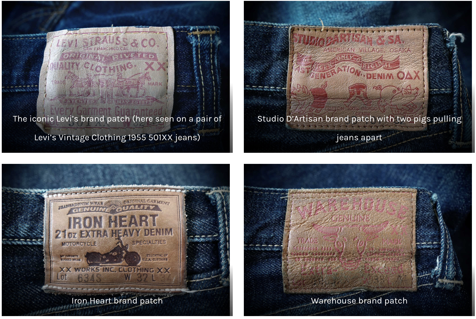 A selection of back patches from famous jeans brands. Photo: Denimhunters |