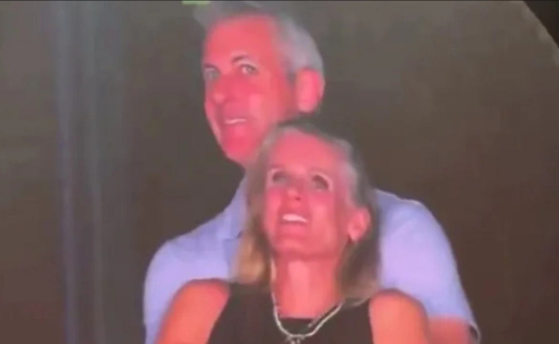 An image, reportedly of Andy Byron and Kristin Cabot, appearing affectionate at the Coldplay concert. *Screenshot from video*.