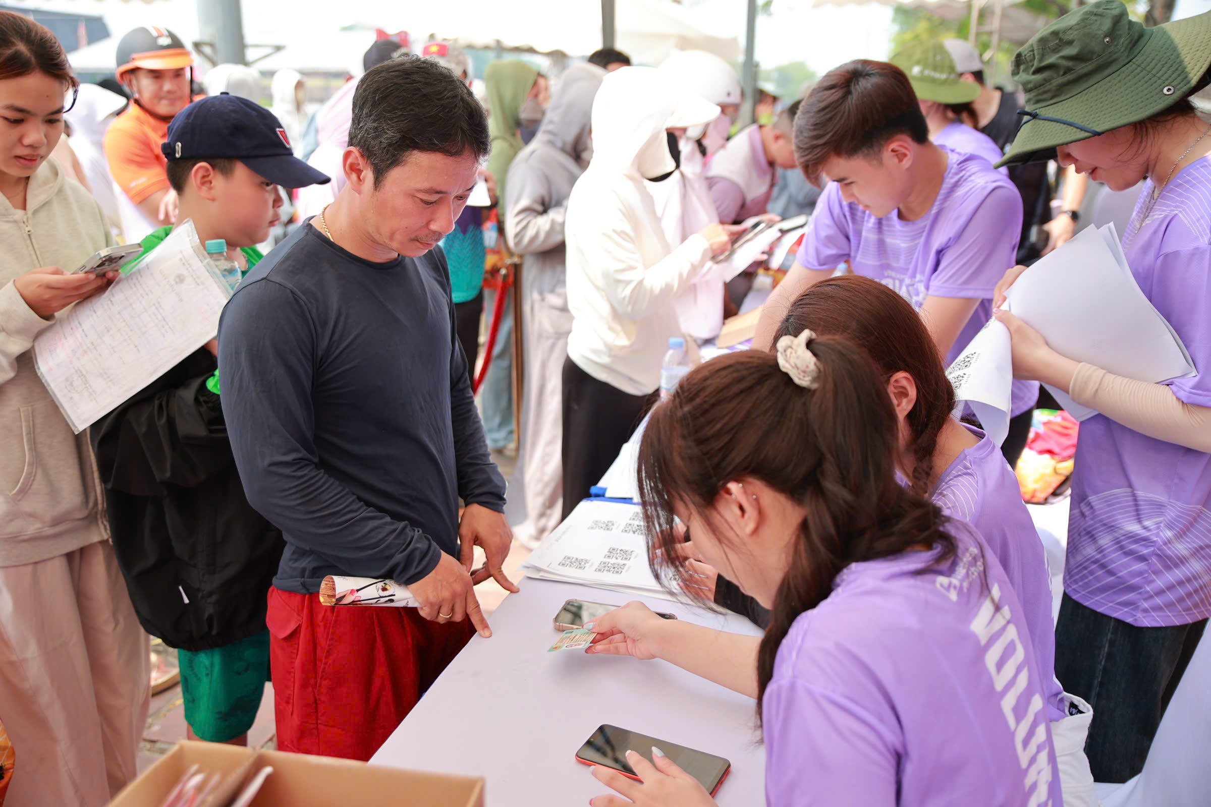 The organizing committee deployed over 20 volunteers to assist families in verifying information and distributing the race kits. This streamlined process typically took about one minute per participant. |