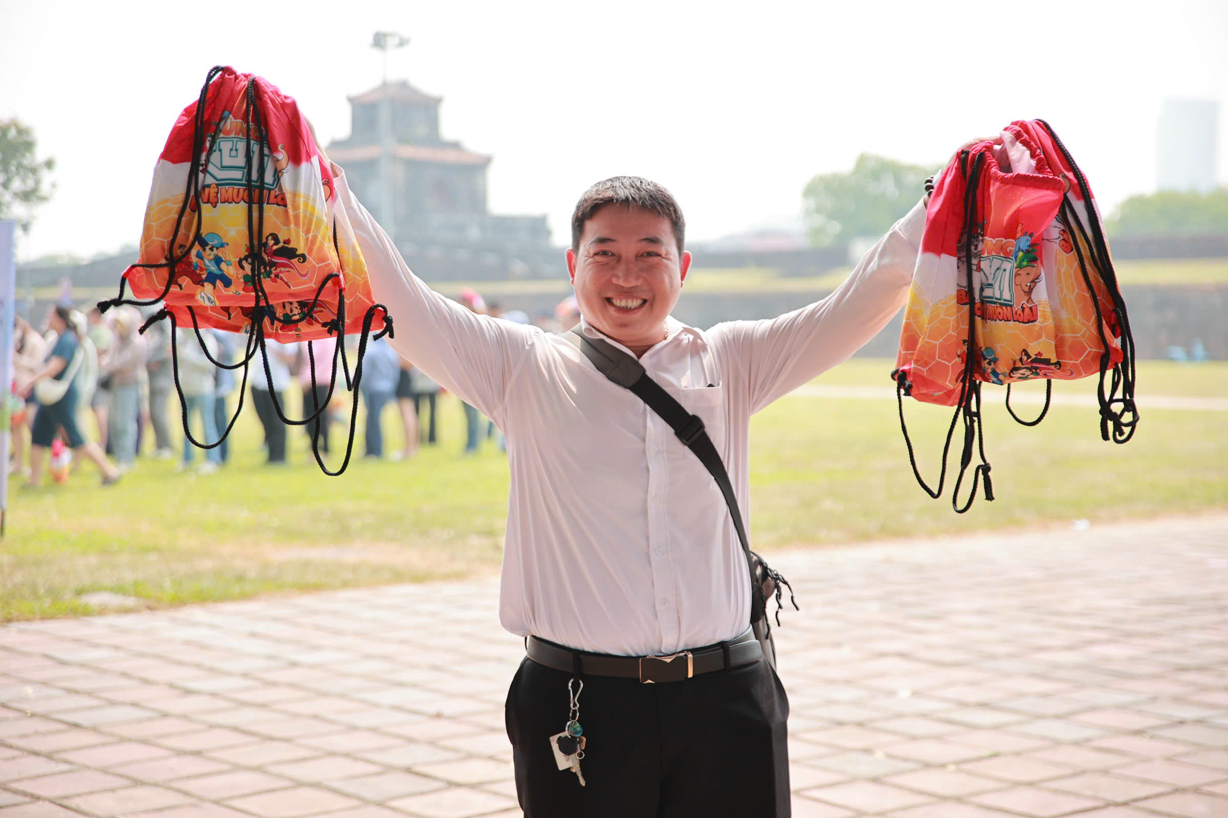Nguyen Ngoc Minh Hai, a resident of Phu Xuan ward, collected four race kits for his child and nieces/nephews. He mentioned that his family has participated in Kun Marathon Hue since its earliest editions.