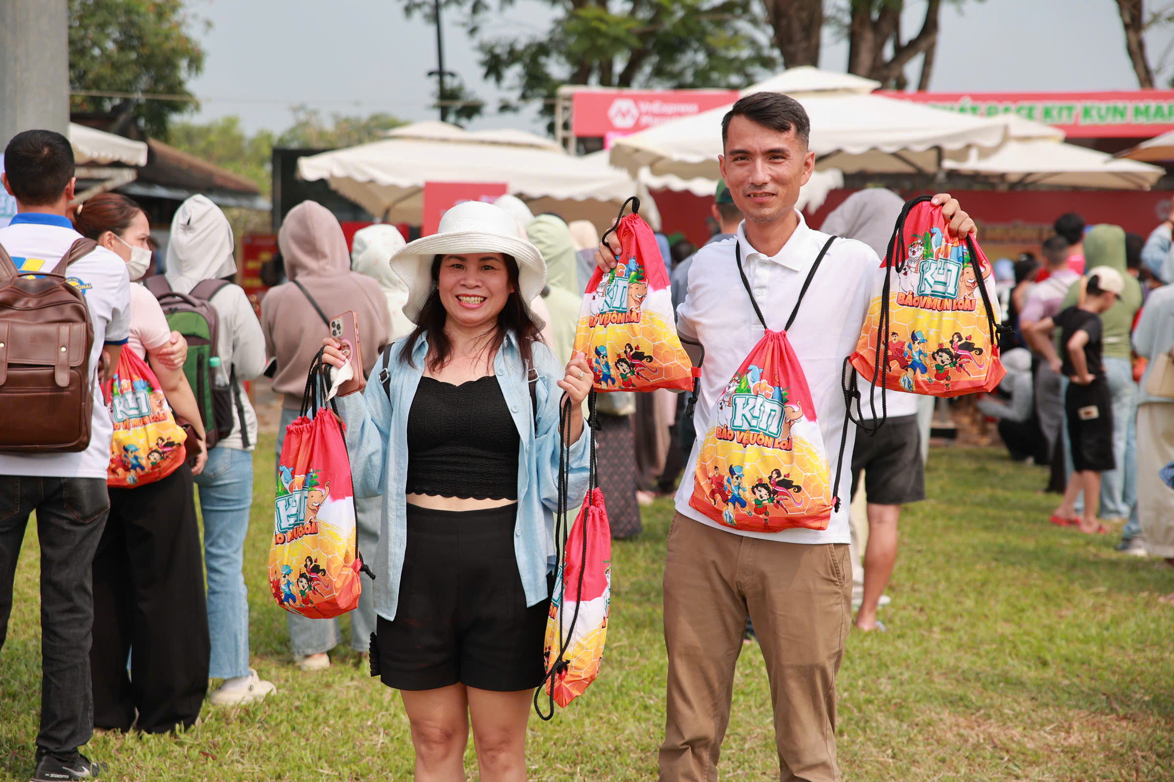 Parents and children eagerly checked in against the event's "Together with Kun, protect all species" backdrop. At the race on the morning of 18/4, artist Truong Giang will deliver this message to the young participants. The event also includes interactive game booths, all centered around the same theme.