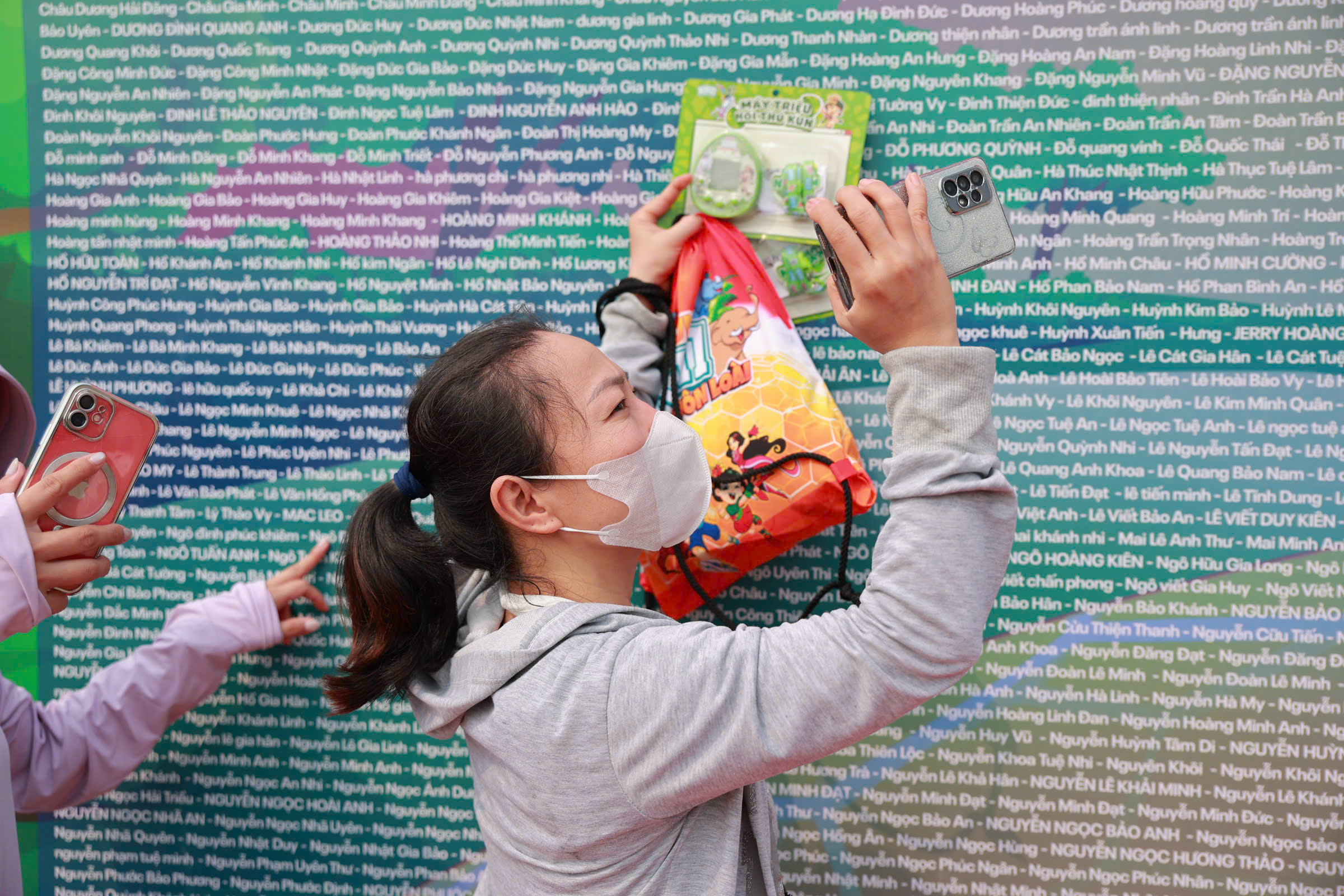 Chau Vu Thuy Vi, a resident of Thuan Hoa ward, captured photos to share with her family after successfully collecting the race kits. Vi expressed her admiration for this year's event theme. "When children learn to love animals, they also develop empathy and a more compassionate way of life," she noted. |