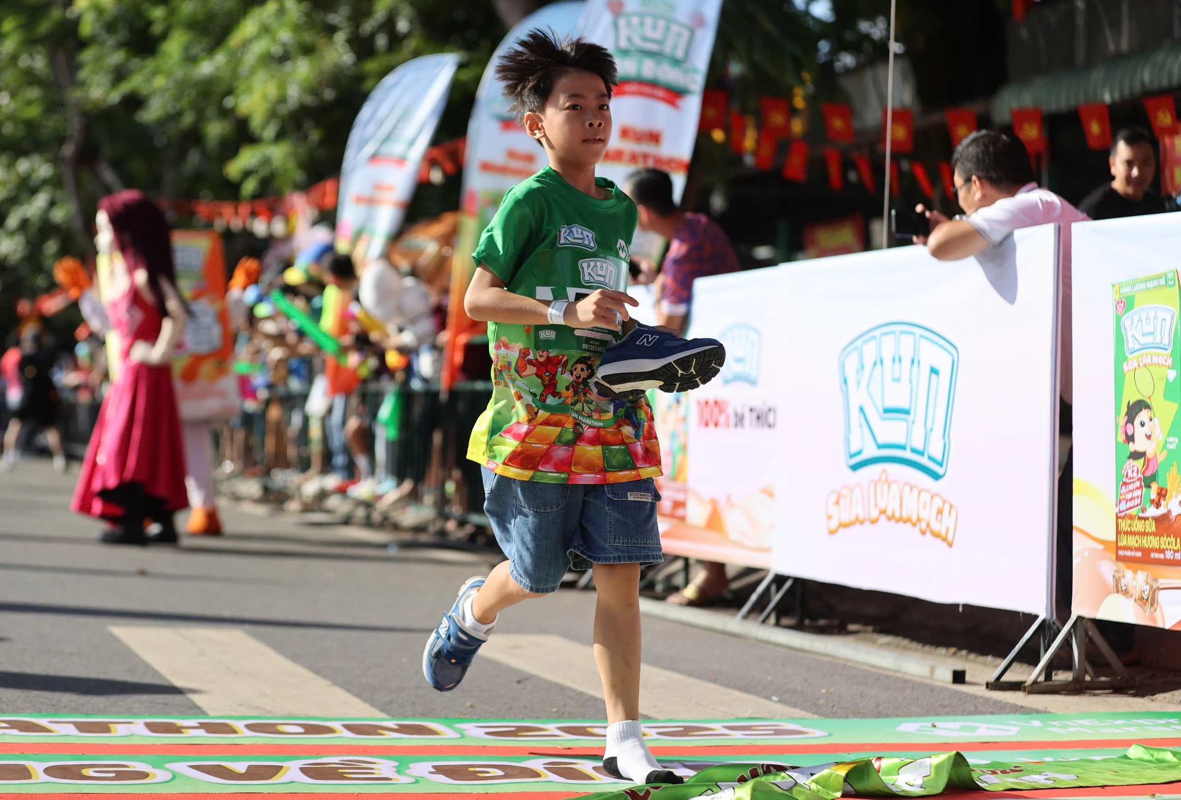 Parents are advised to have their children try out their shoes beforehand, prioritizing lightweight, grippy shoes that fit well. Clothing should be made of soft, sweat-wicking, and stretchy material to allow children to move comfortably. Artist Truong Giang, a frequent Kun Marathon participant, emphasized, "With just a little more attention to preparation, children will have a more complete sporting experience,".