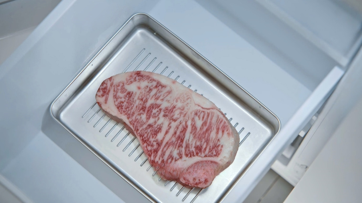 Beef preserved in the -30 degrees Celsius deep freezer, retaining color and structure thanks to small, fine ice crystals. Photo: Toshiba |