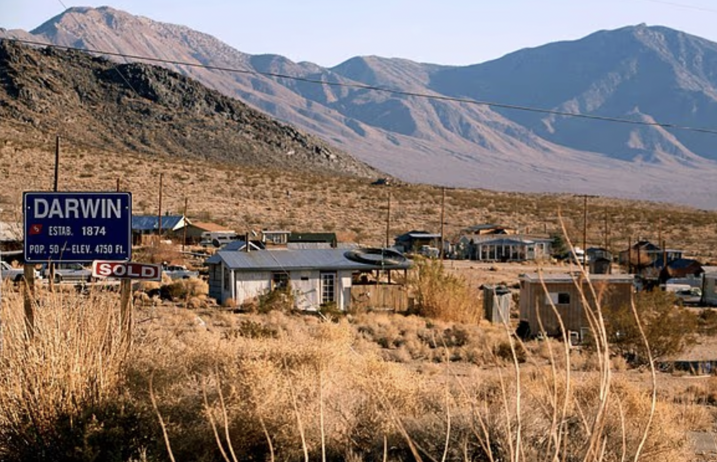 Nestled deep in the Inyo County desert, adjacent to Death Valley National Park, Darwin once thrived in the late 19th century. Its population reached around 3,500 people after silver and lead mines were discovered. However, its prosperity faded as ore reserves depleted and major transportation routes shifted. By the 1970s, the last mines closed, leading to a significant population decline.