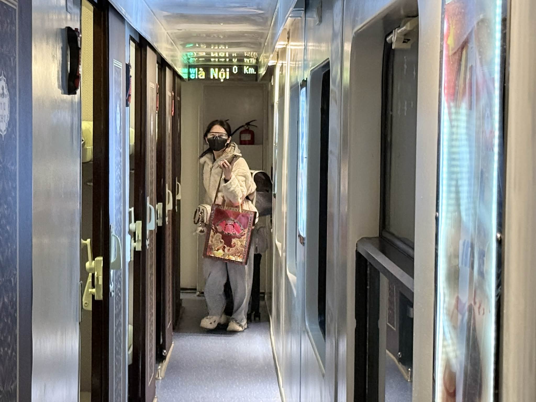 Kim Anh traveling by train from Hanoi station to Vinh station (Nghe An) during the Lunar New Year 2026 holiday, thanks to early ticket booking. *Photo: Contributed by subject*