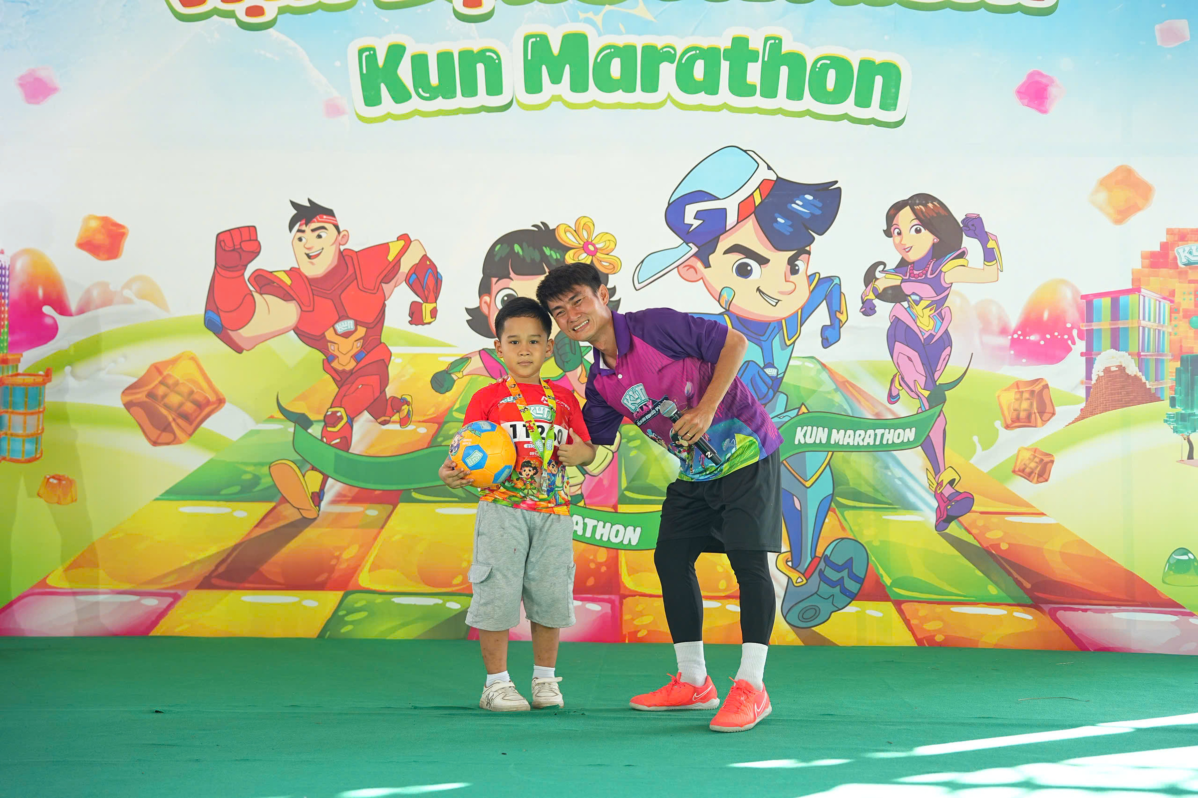 From early morning, KOLs such as Be Sun, Duy Anh, Hao Khang, Trong Thy, Meo Simmy, and Phong Can were present at the main stage area. Many children gathered there to interact, warm up, and get acclimated to the pre-race atmosphere.