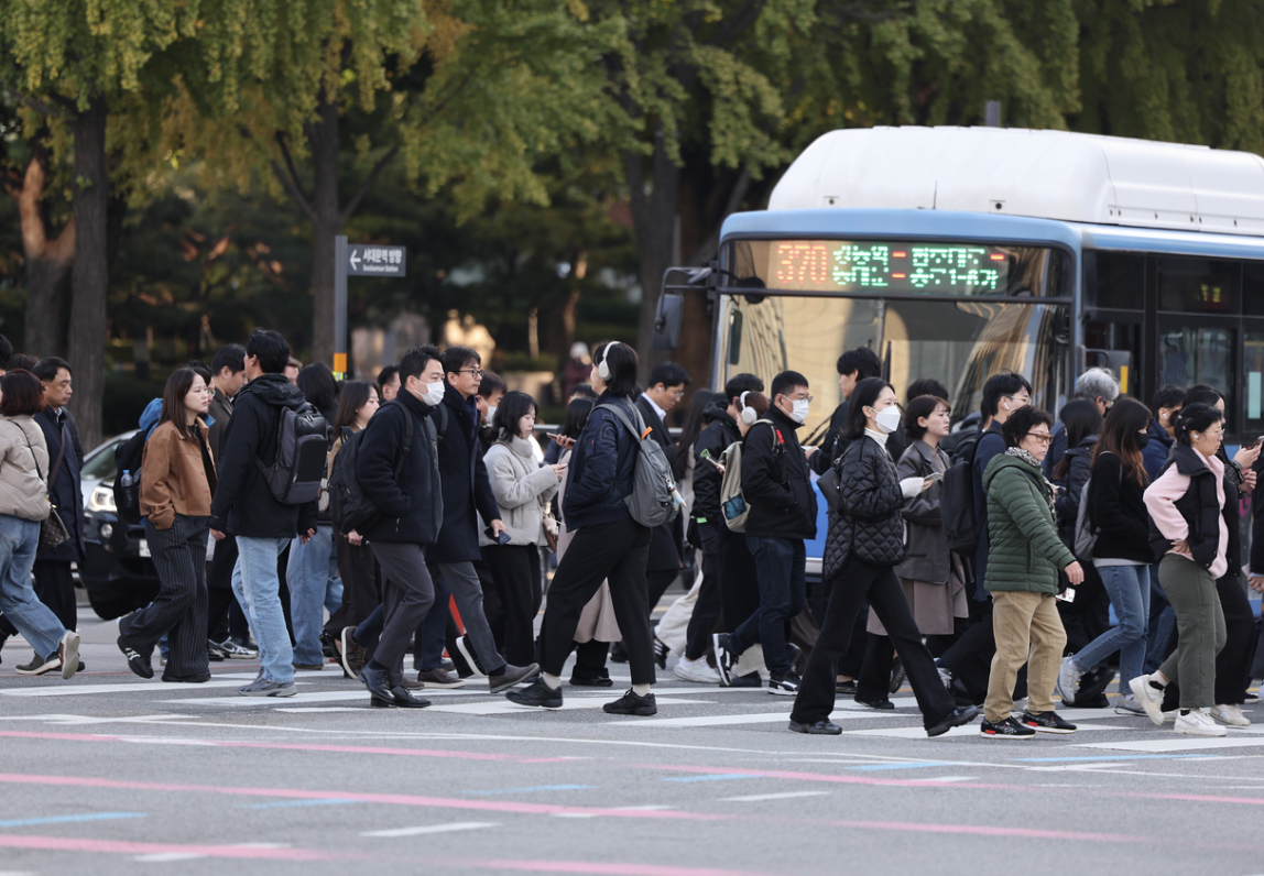South Koreans cross a street near Gwanghwamun square, central Seoul, South Korea. Photo: Yonhap |