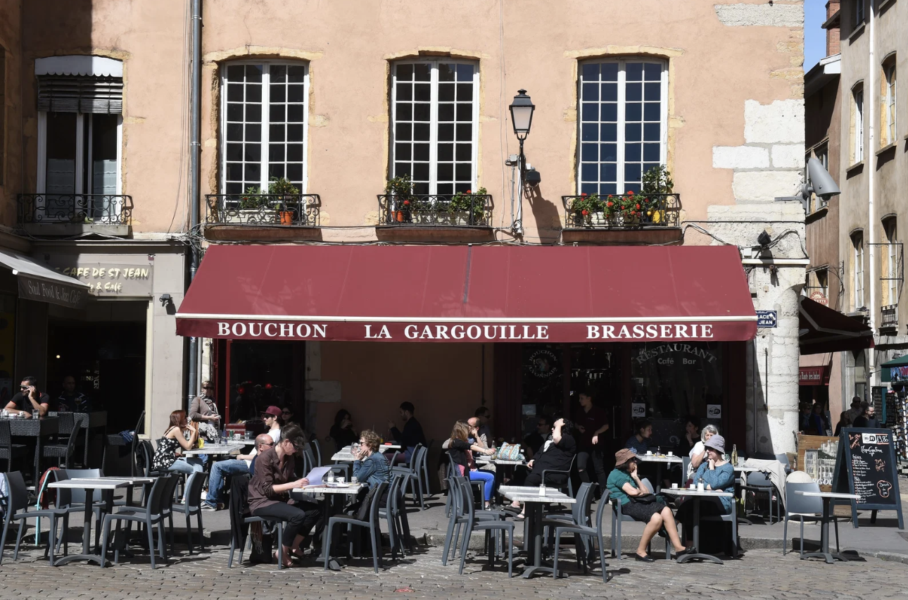 French people dine on the terrace of La Gargouille cafe in Saint-Jean Square, Lyon, France, 2016. *Photo: Philippe Desmazes/AFP* |